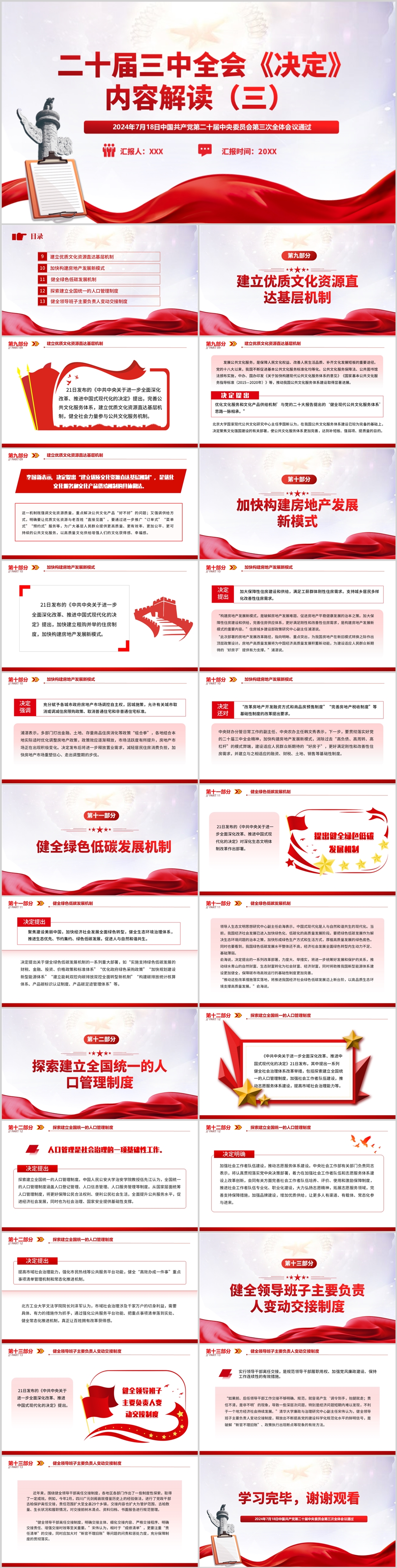 二十届三中全会《决定》内容解读(三)党课ppt模板(内含WORD演讲稿)