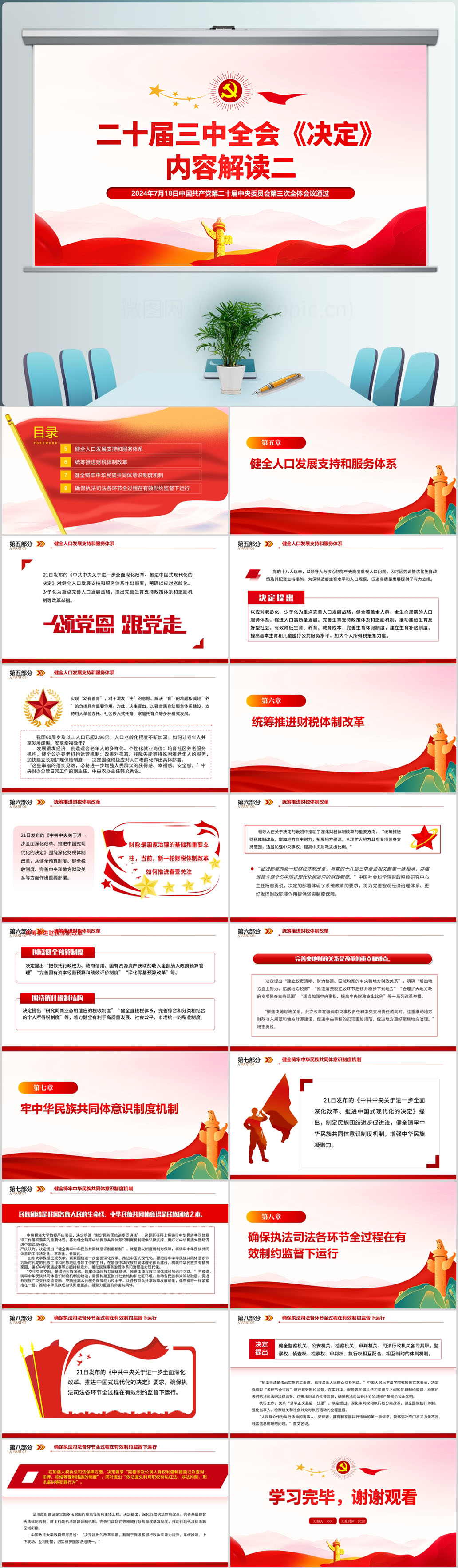 二十届三中全会《决定》内容解读(二)党课ppt模板(内含WORD演讲稿)