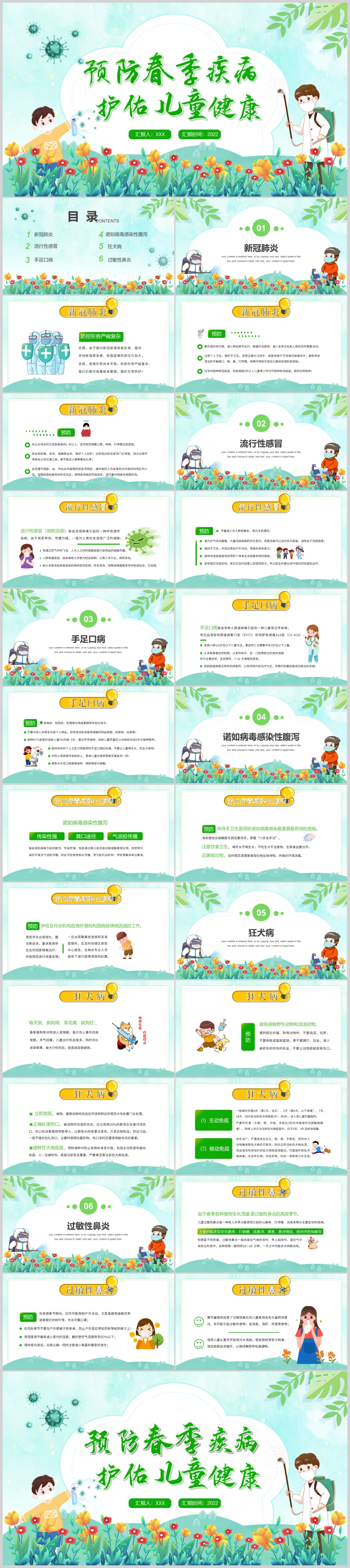 绿色春季预防传染病健康安全教育主题班会PPT课件模板