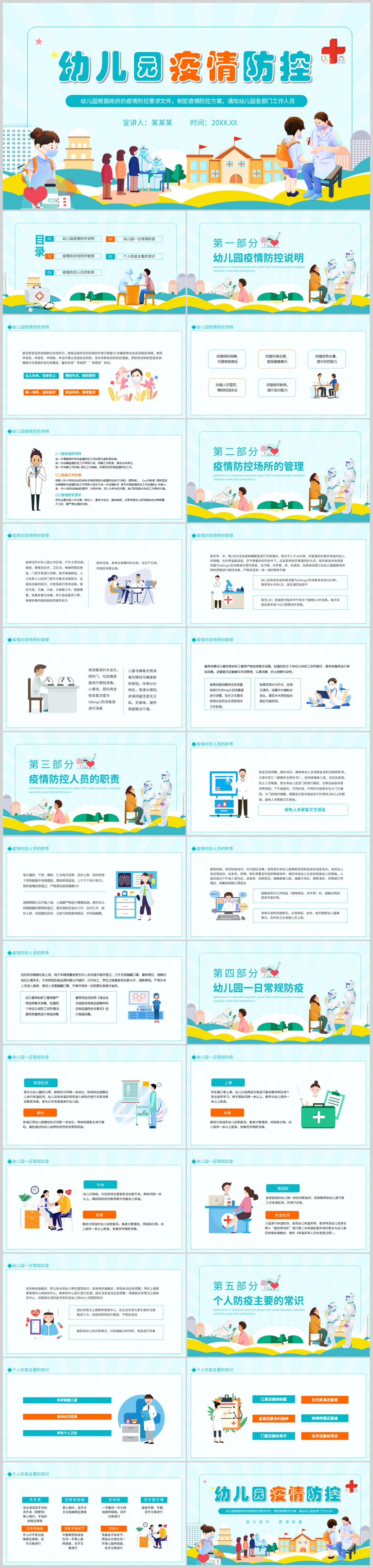 可爱卡通风格幼儿园中小学生疫情防控工作主题ppt模板