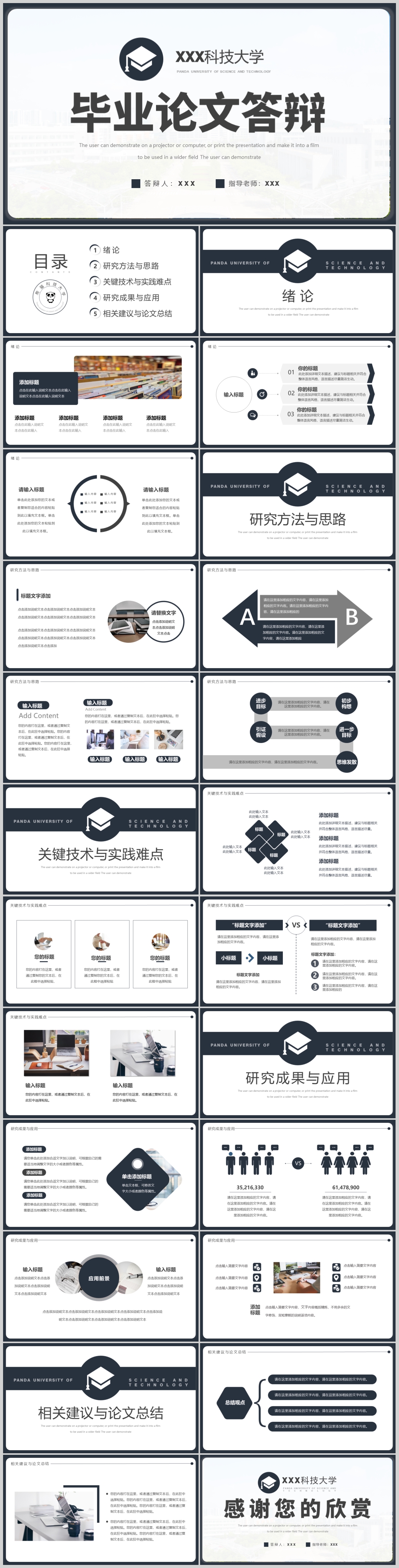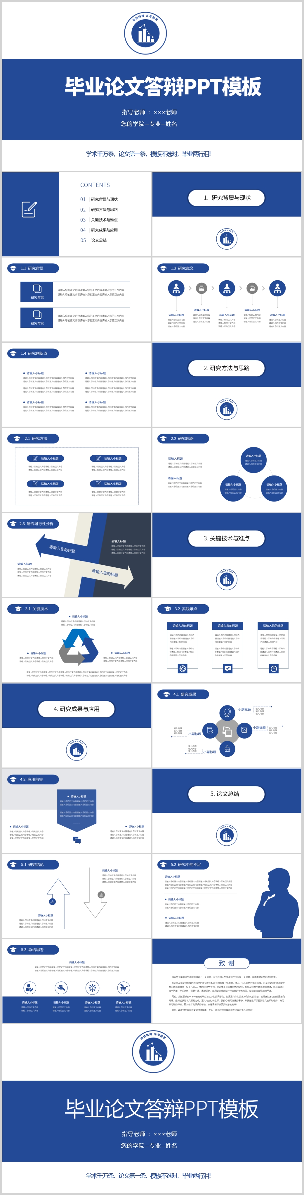 蓝色简约严谨学术论文毕业答辩ppt模板