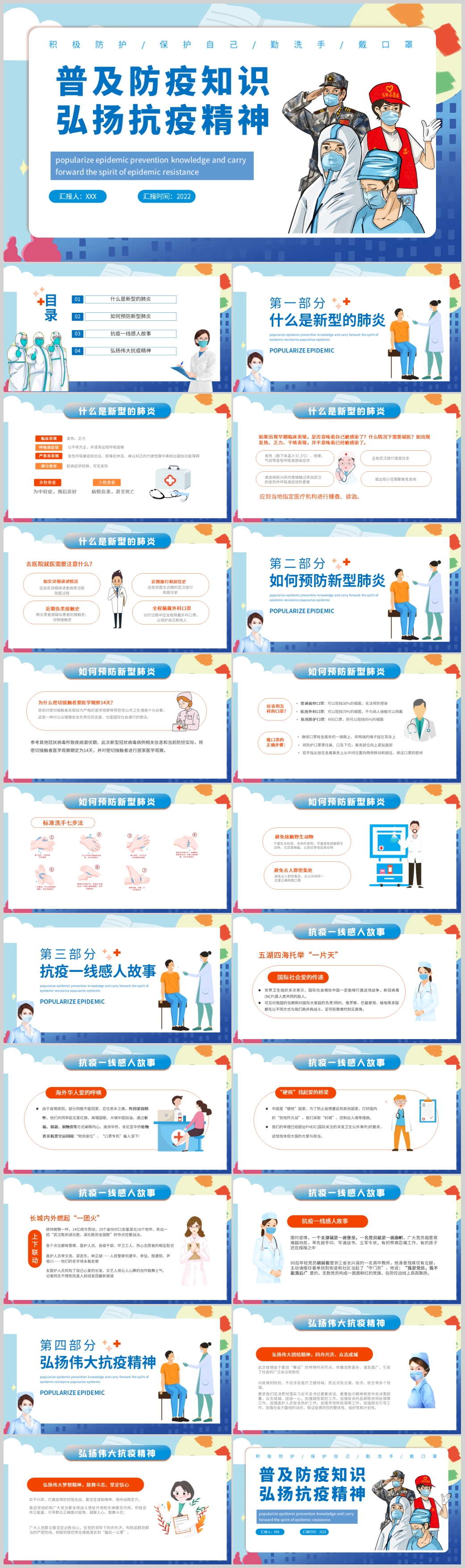 普及防疫知识弘扬抗疫精神主题课件PPT模板