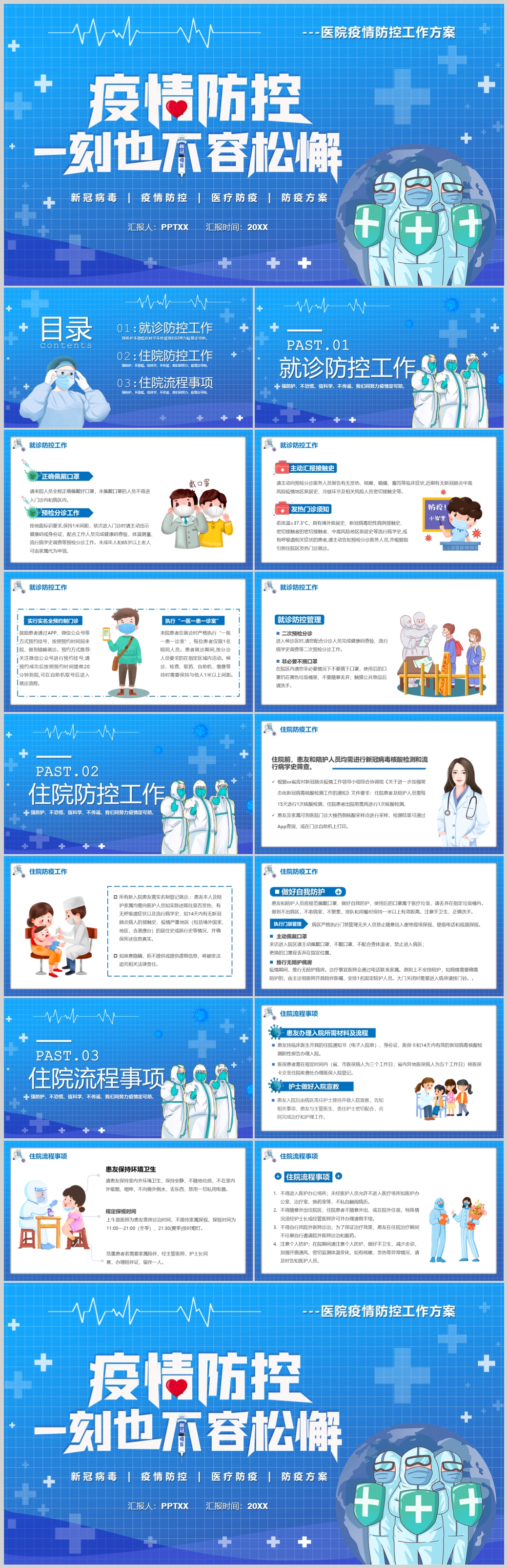 蓝色医院疫情防控工作流程方案PPT模板