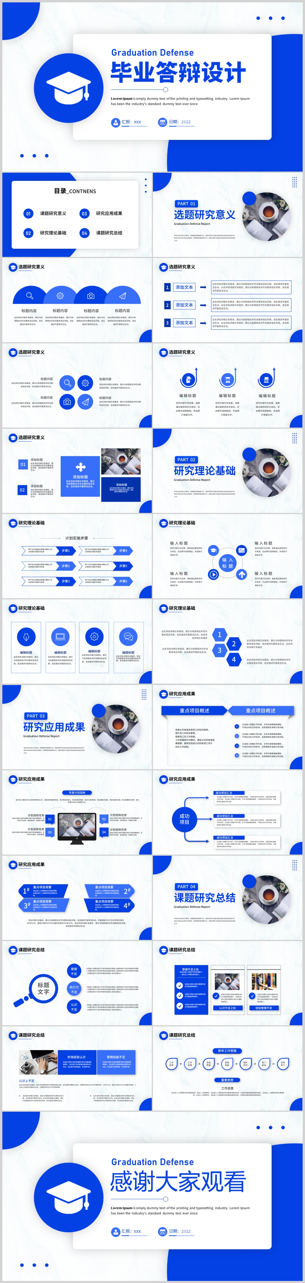 2022蓝色简洁实用型开题报告毕业论文答辩ppt模板