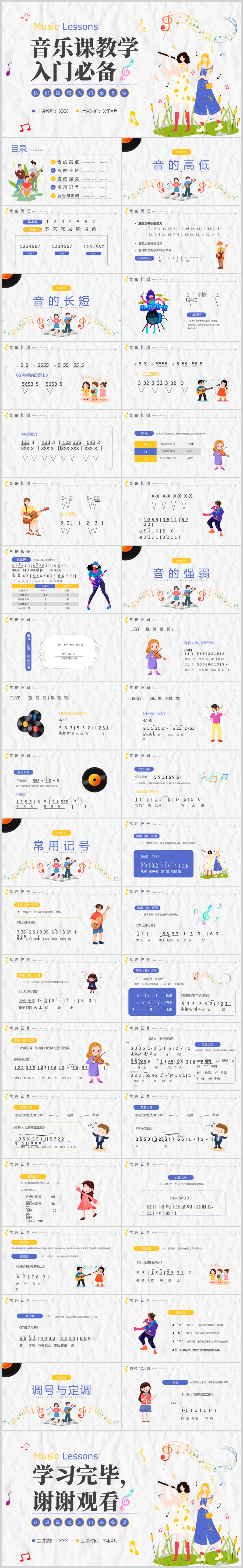 卡通唱歌入门必备音乐课教学主题课件PPT模板