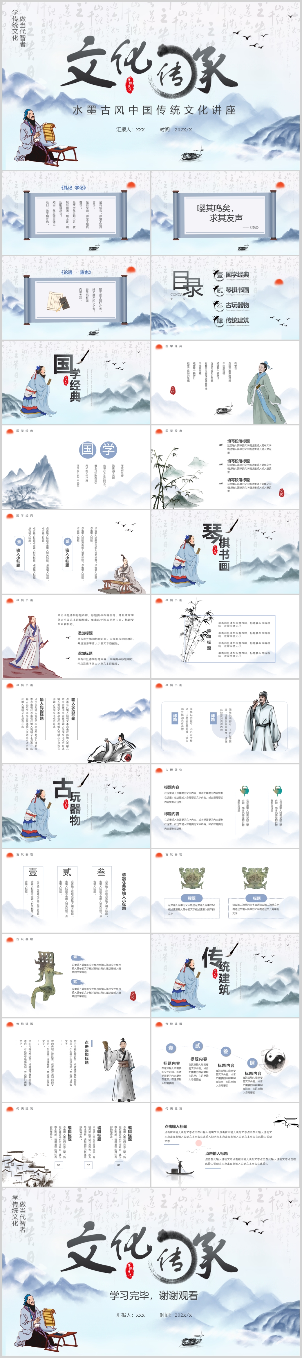 水墨古风中国传统文化讲座课件PPT模板