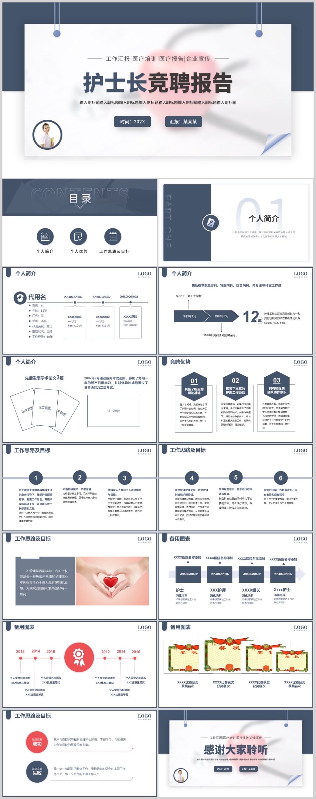 蓝色简约医院医生护士长竞聘报告PPT模板