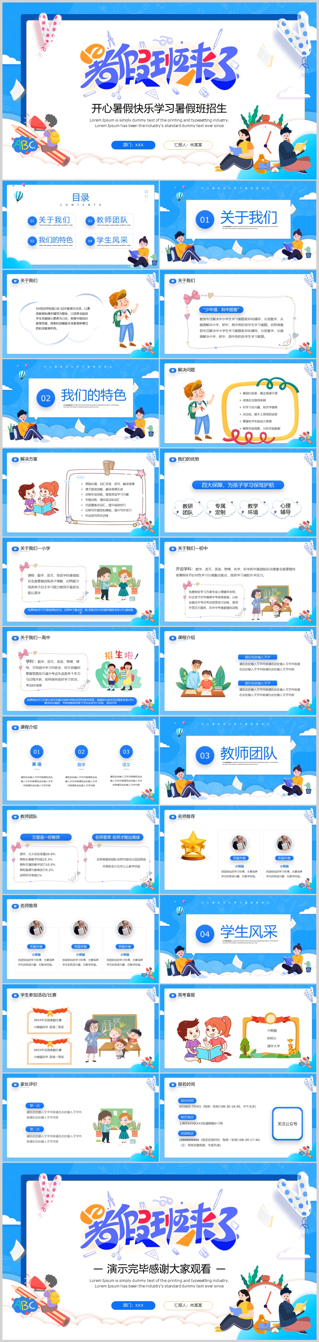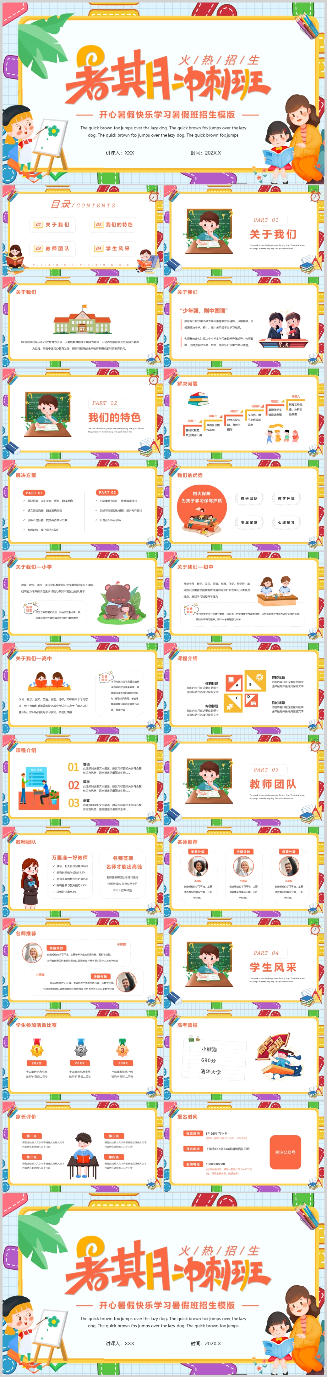 卡通幼儿园中小学生暑假培训教育主题班会课件PPT模板
