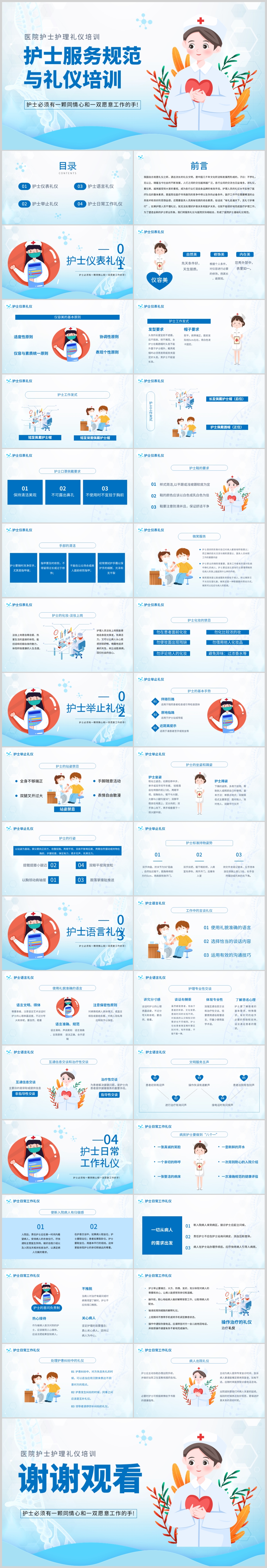 蓝色医院护士服务规范与礼仪培训课件PPT模板