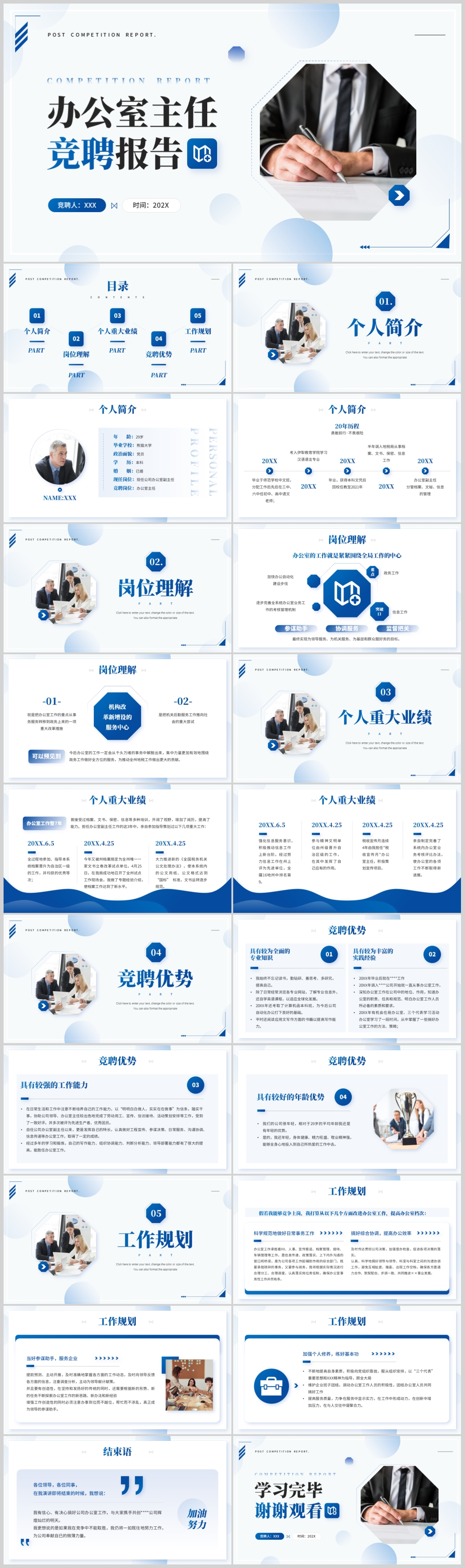 蓝色职场办公室主任竞聘报告岗位竞聘ppt模板