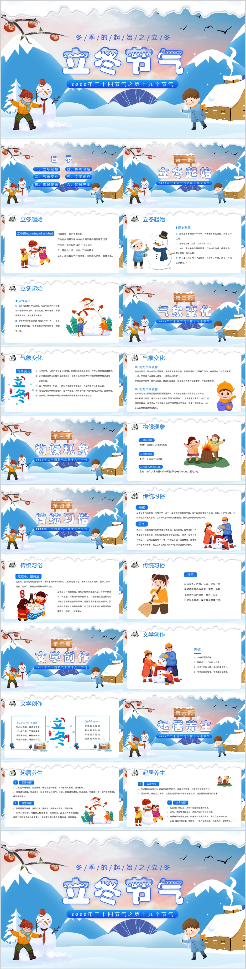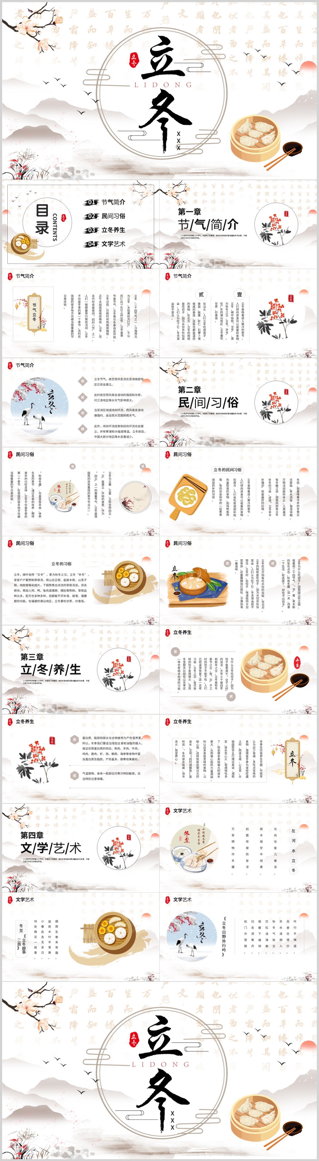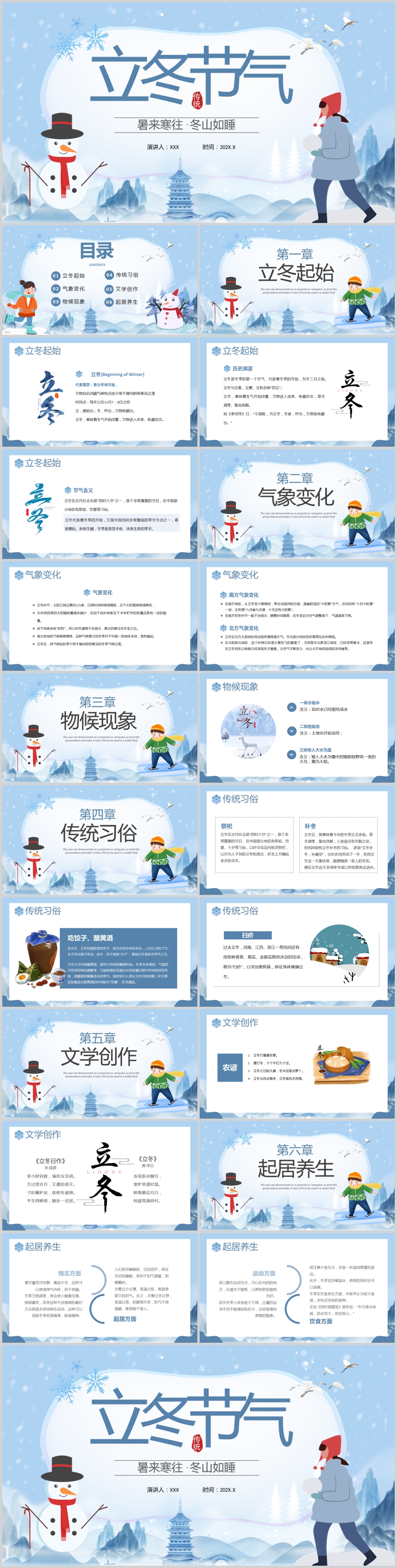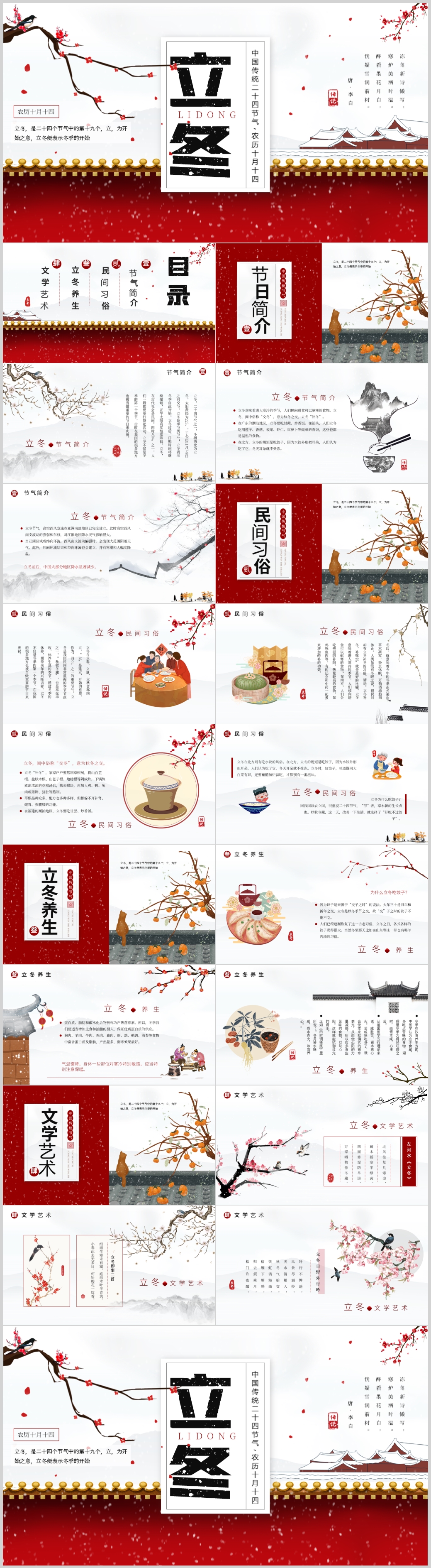 中国风冬季冬天来了二十节气立冬通用ppt模板