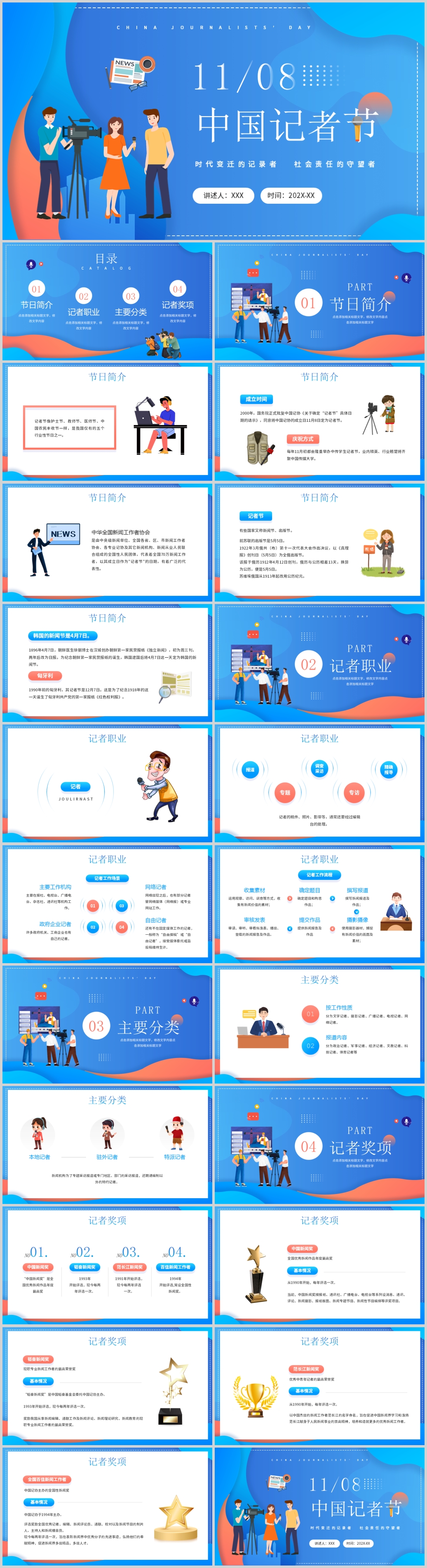 蓝色中国记者节PPT