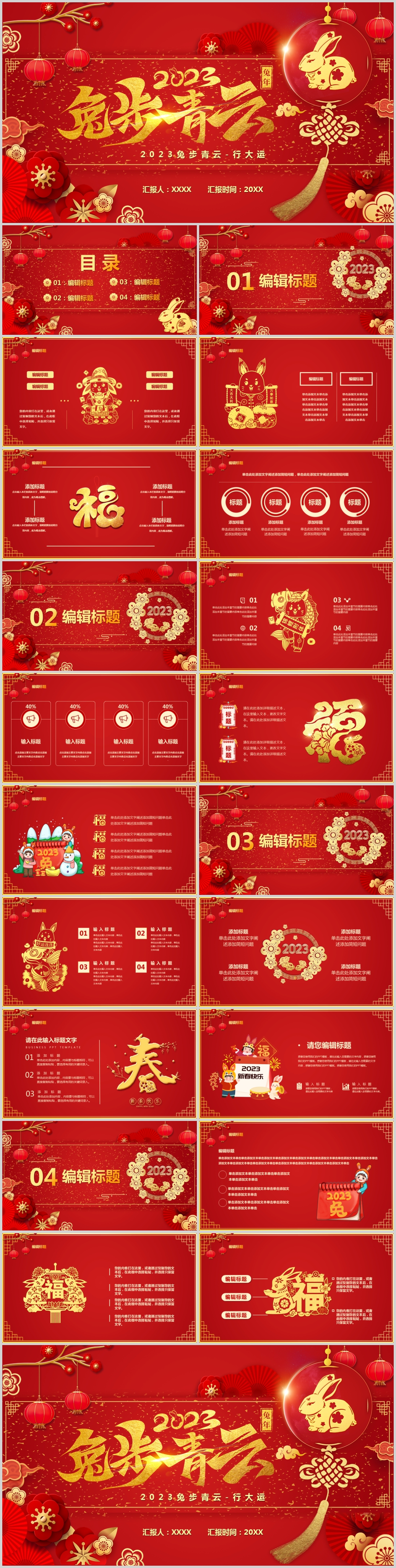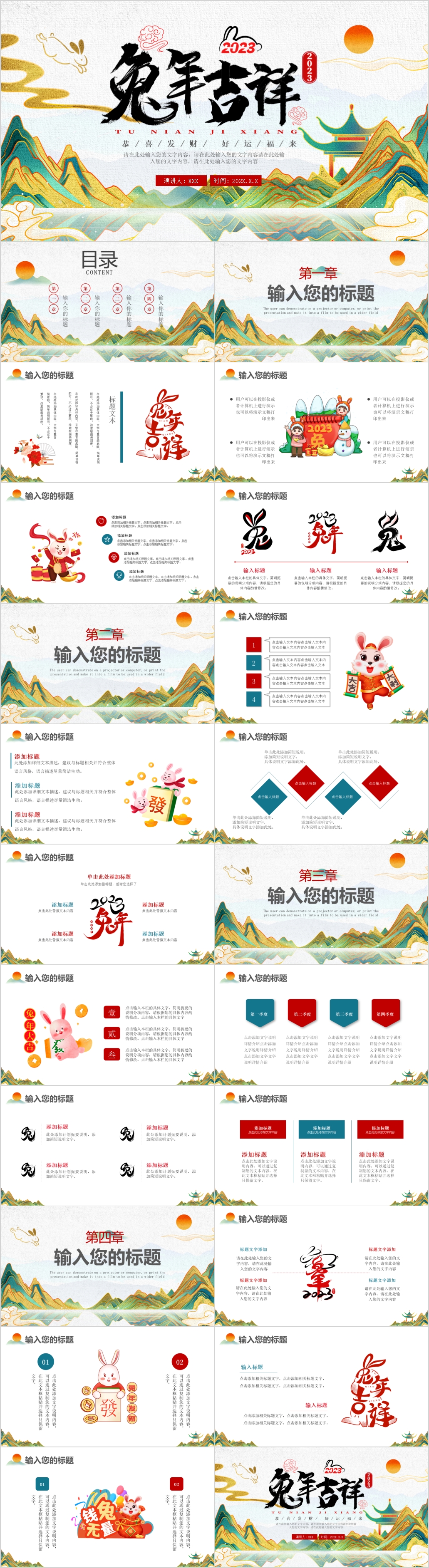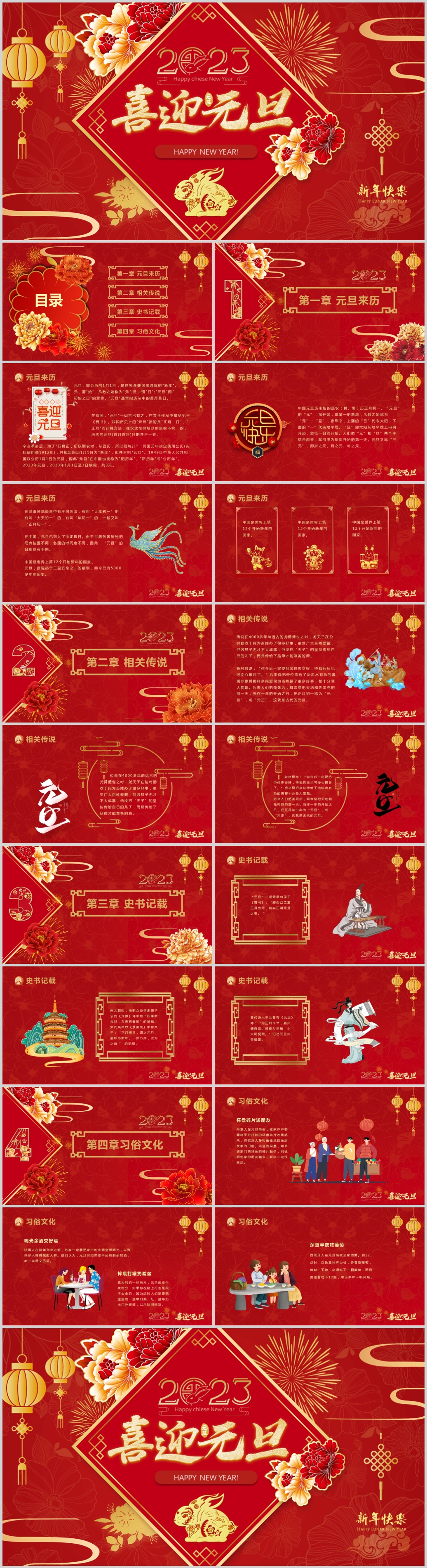 2023年中国风兔年大吉新年元旦通用介绍PPT模板