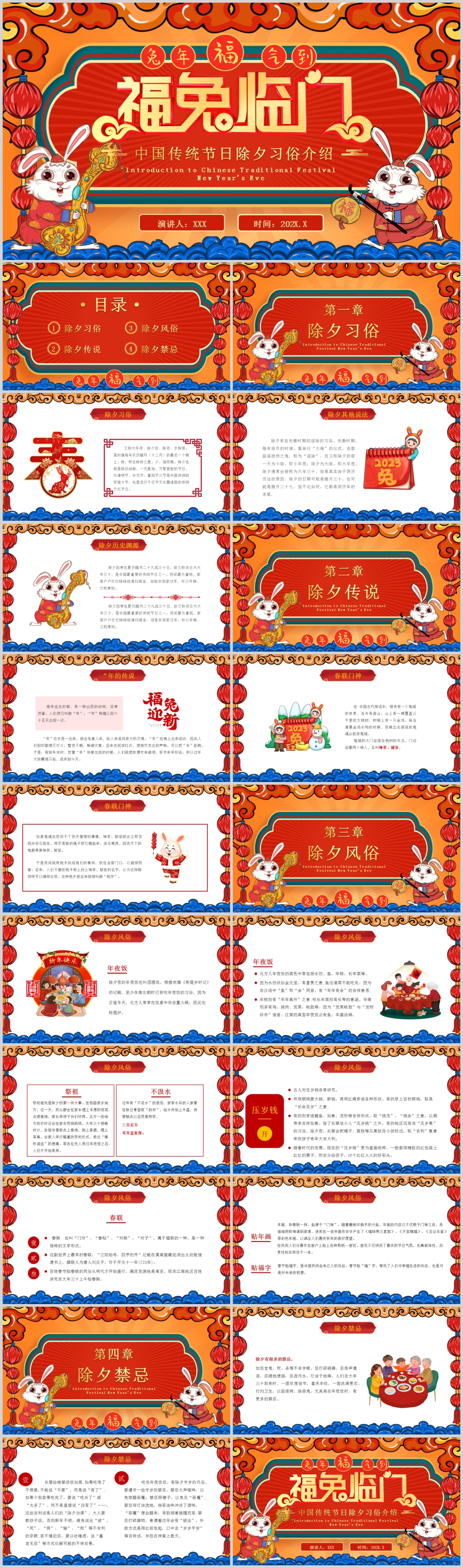 2023年福兔贺岁元旦新年春节传统节日介绍ppt模板