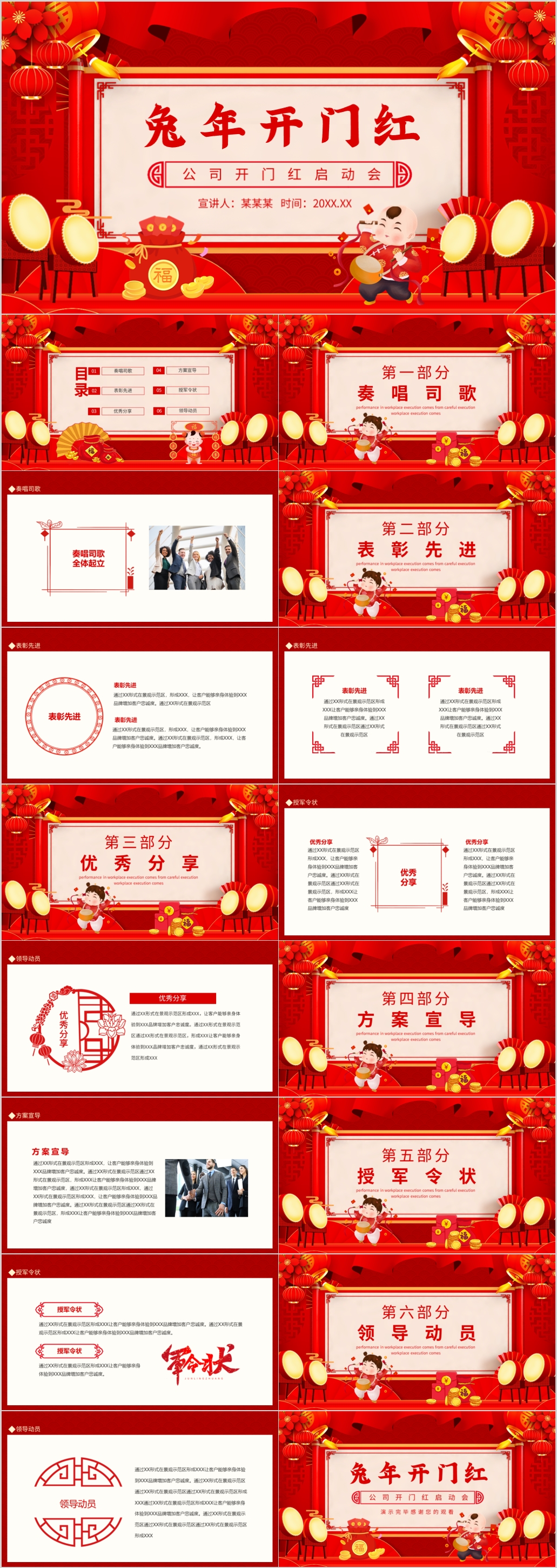 2023年红色喜庆兔年开门红年会新年元旦晚会ppt模板
