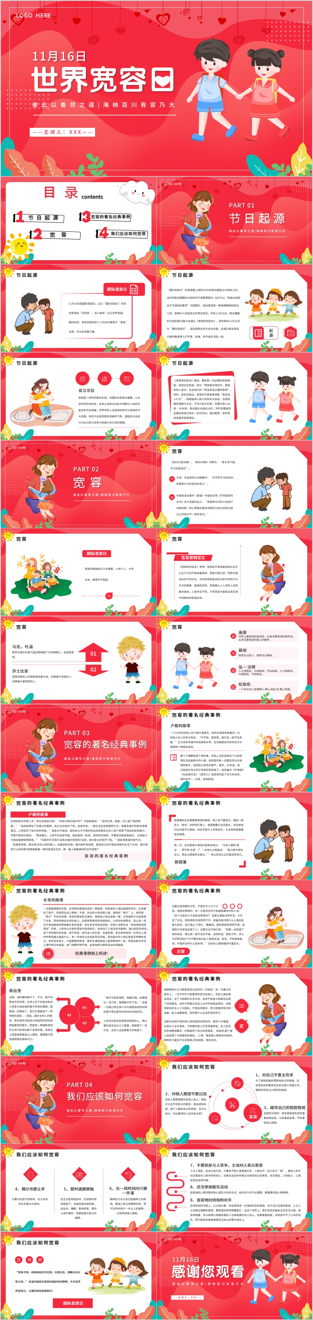 粉丝温馨11月16日世界宽容日介绍主题ppt模板