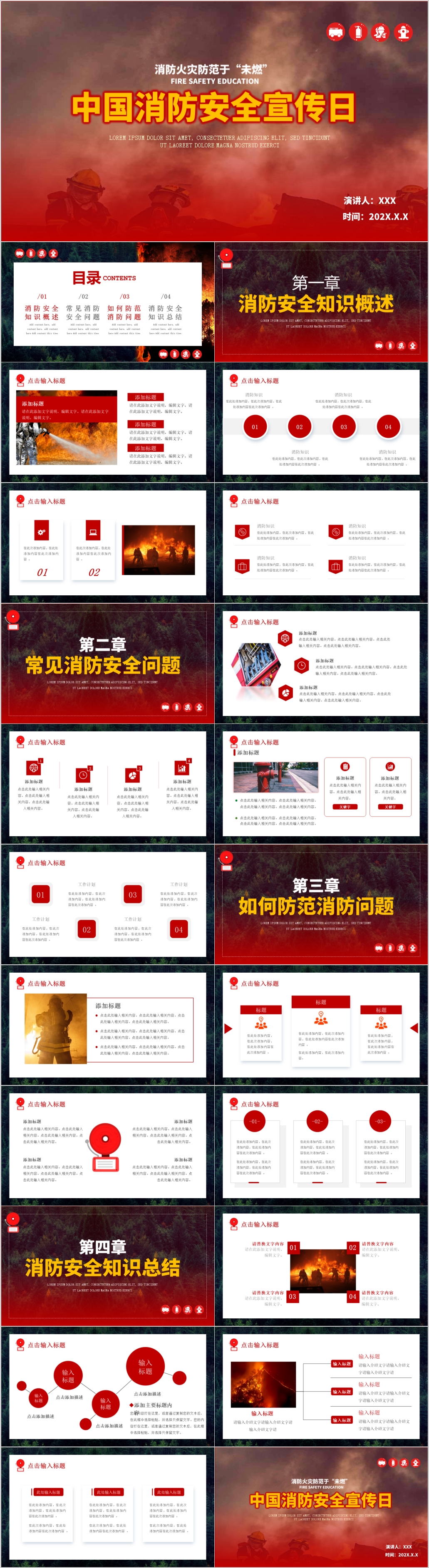 红色119消防宣传日消防安全知识培训课件ppt模板
