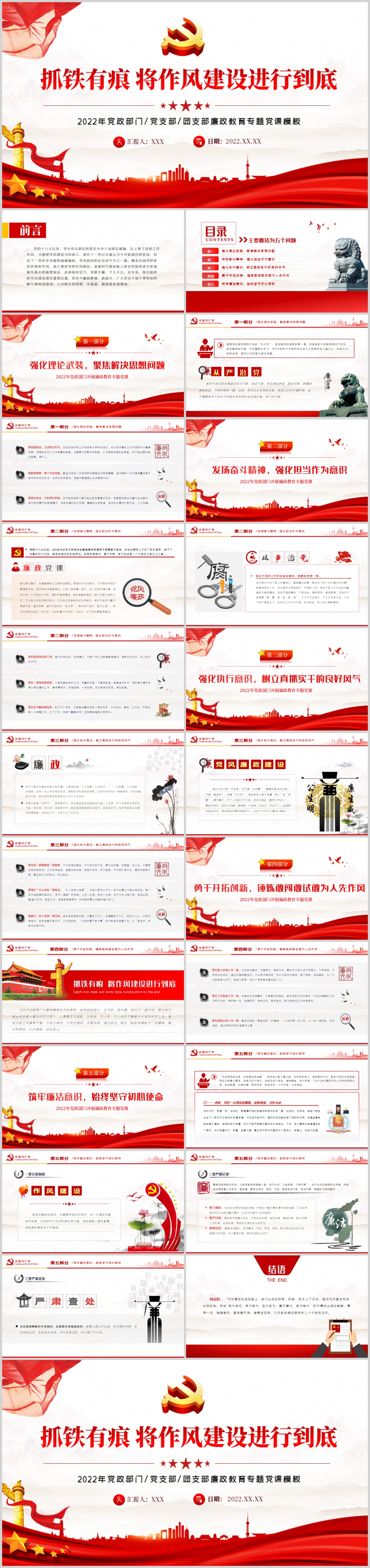抓铁有痕将作风建设进行到底廉政教育PPT模板《含WORD文件》