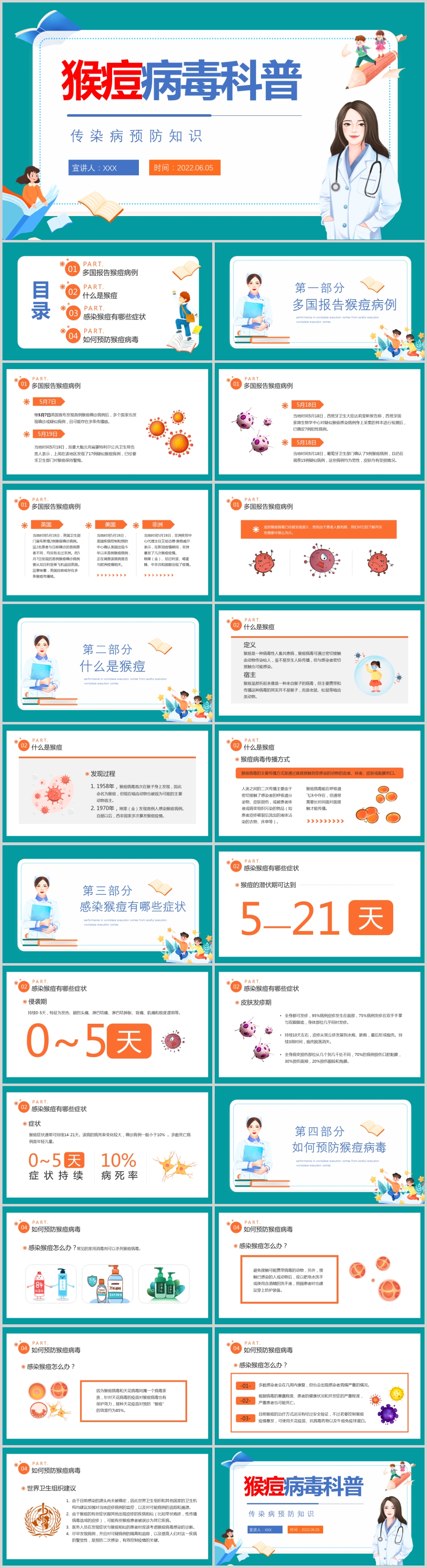 卡通风猴痘传染病防治知识讲座主题班会课件模板