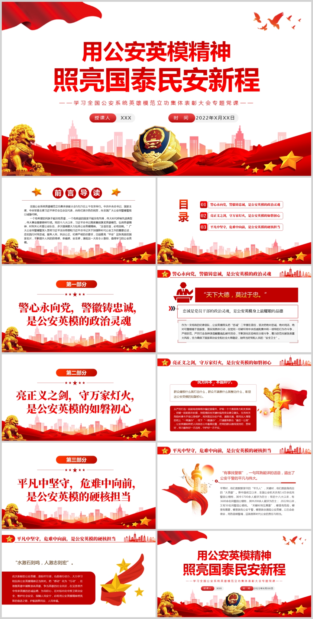 学习全国公安系统英雄模范立功集体表彰大会专题党课课件PPT模板《含WORD文件