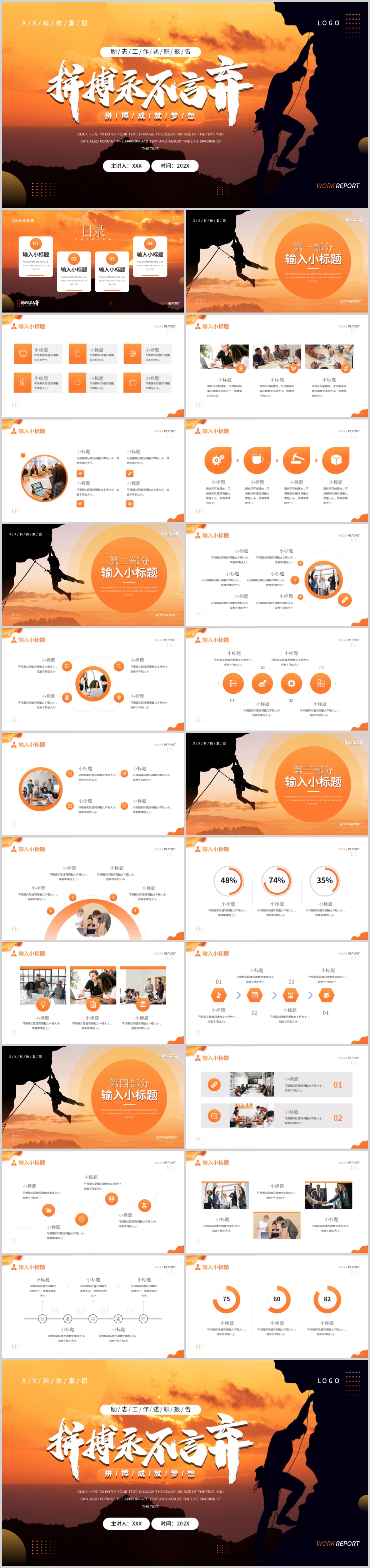 简约风拼搏永不言败励志工作述职汇报PPT通用模板