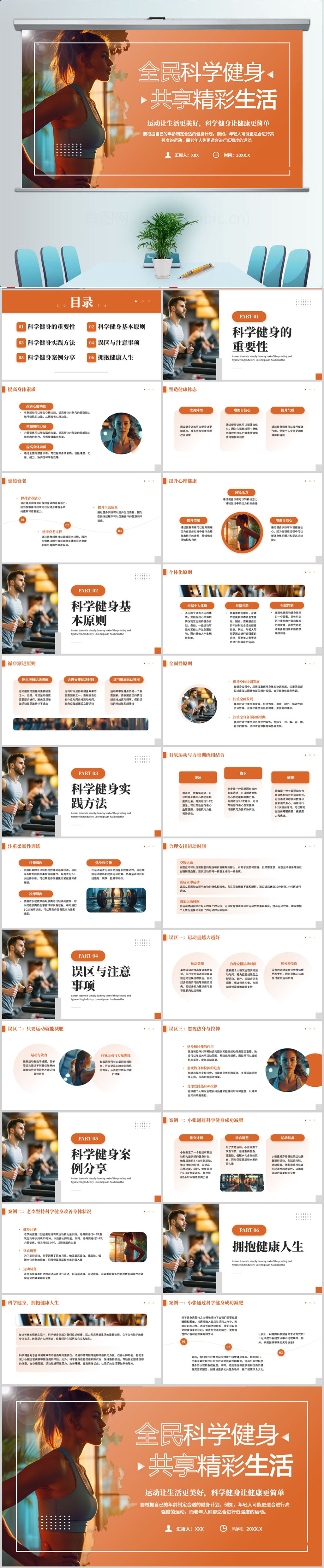 全民健身主题科学运动ppt内容模板设计