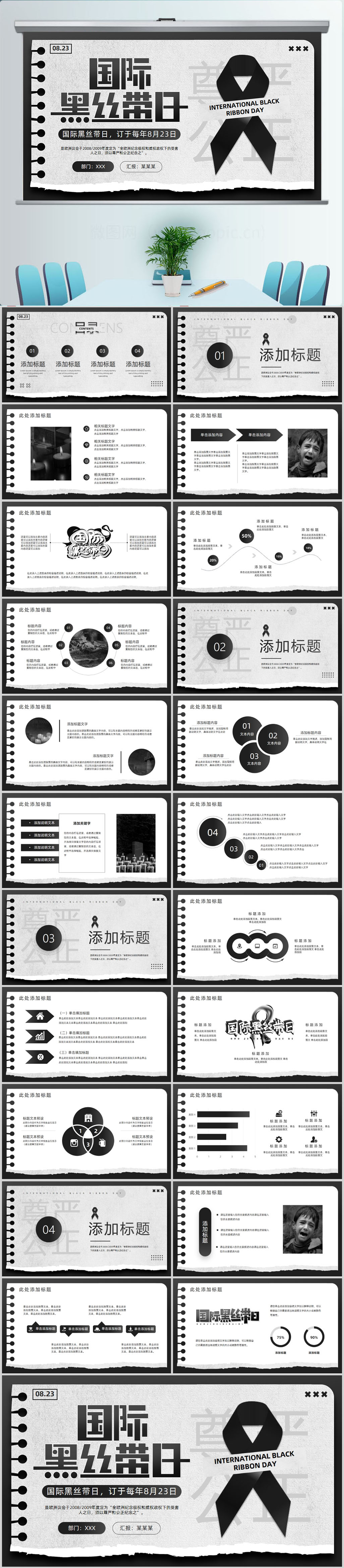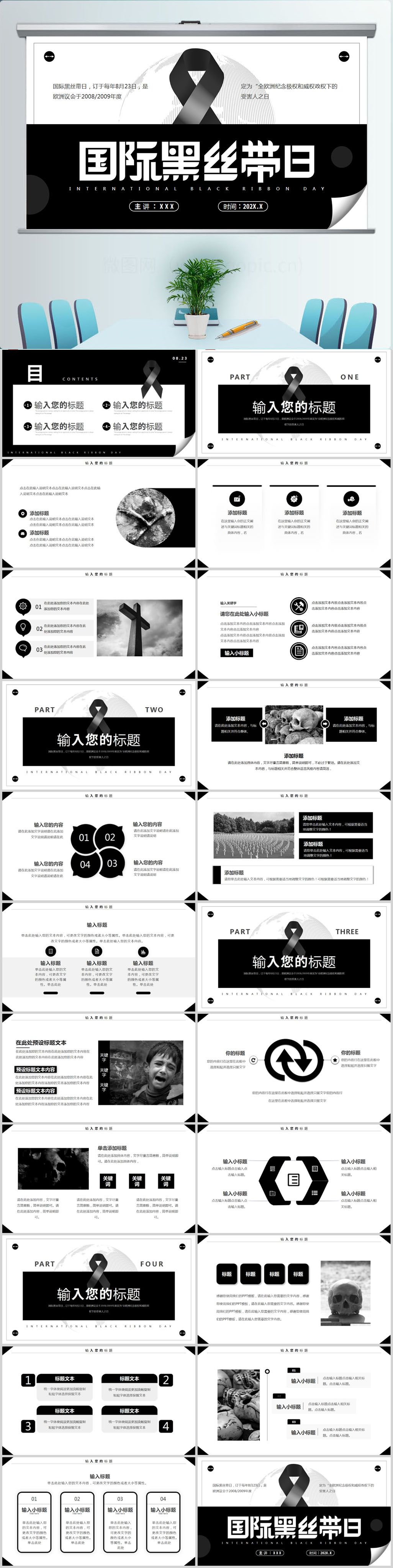 国际黑丝带日PPT通用模板设计