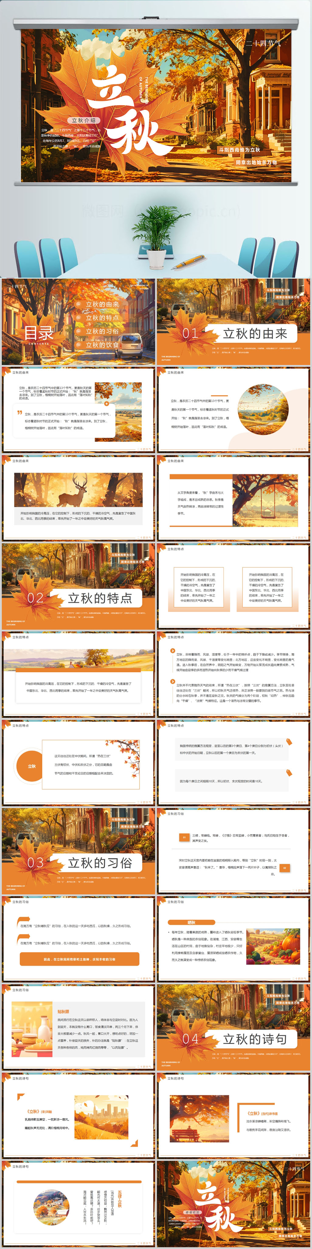 二十四节气之立秋介绍PPT模板设计