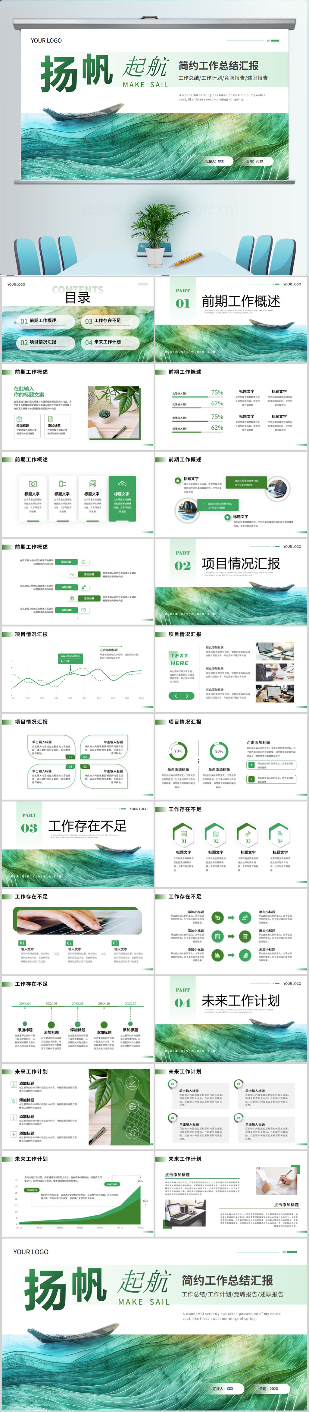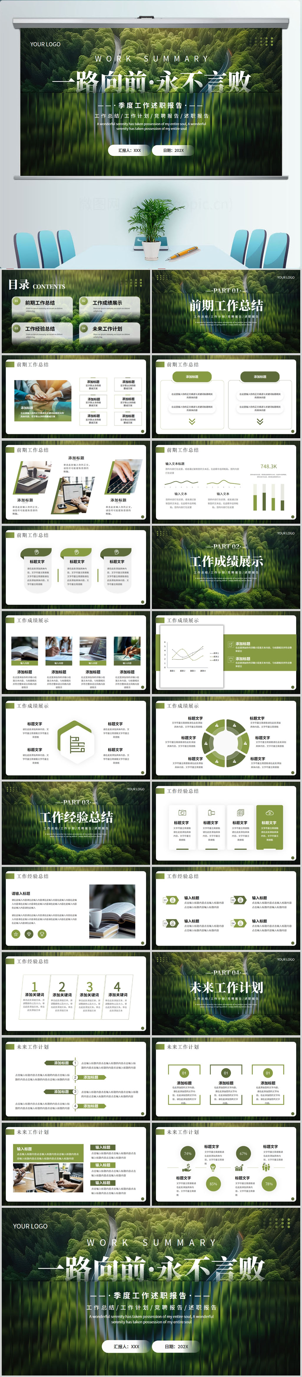 绿色简约季度工作述职报告PPT模板设计