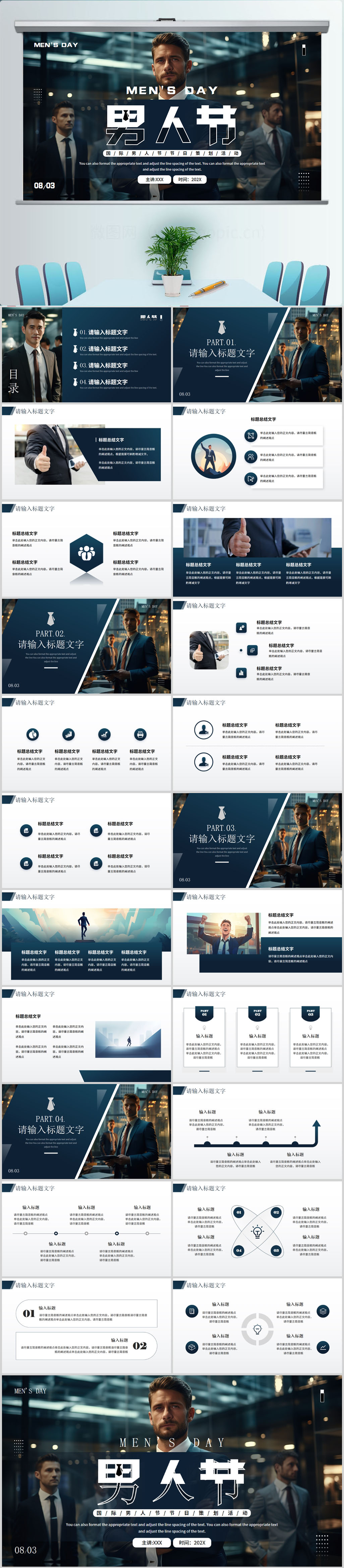 蓝色男人节活动策划PPT模板设计