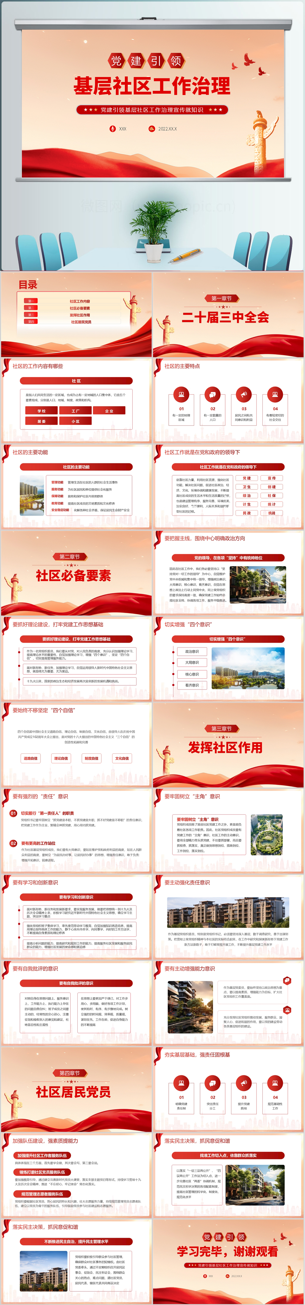 党建引领基层社区工作治理宣传知识培训课件ppt模板