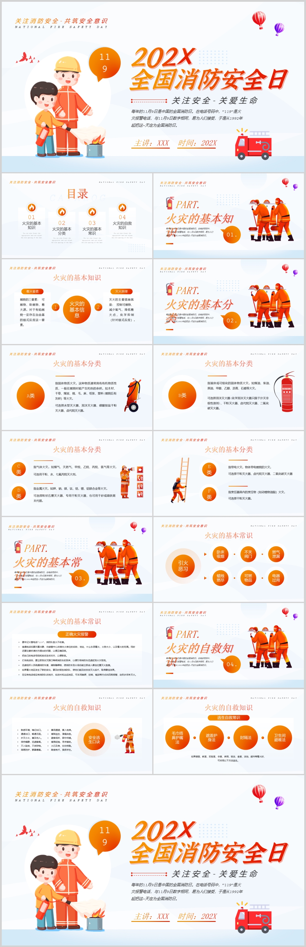 全国消防安全日知识教育防火基础培训主题课件ppt模板