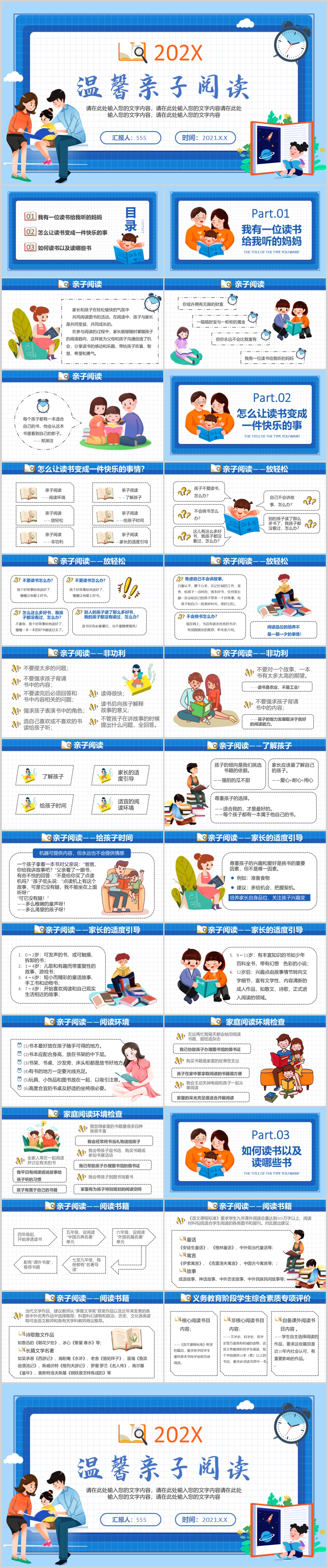 卡通温馨可爱亲子阅读读书分享会阅读日动态PPT模板