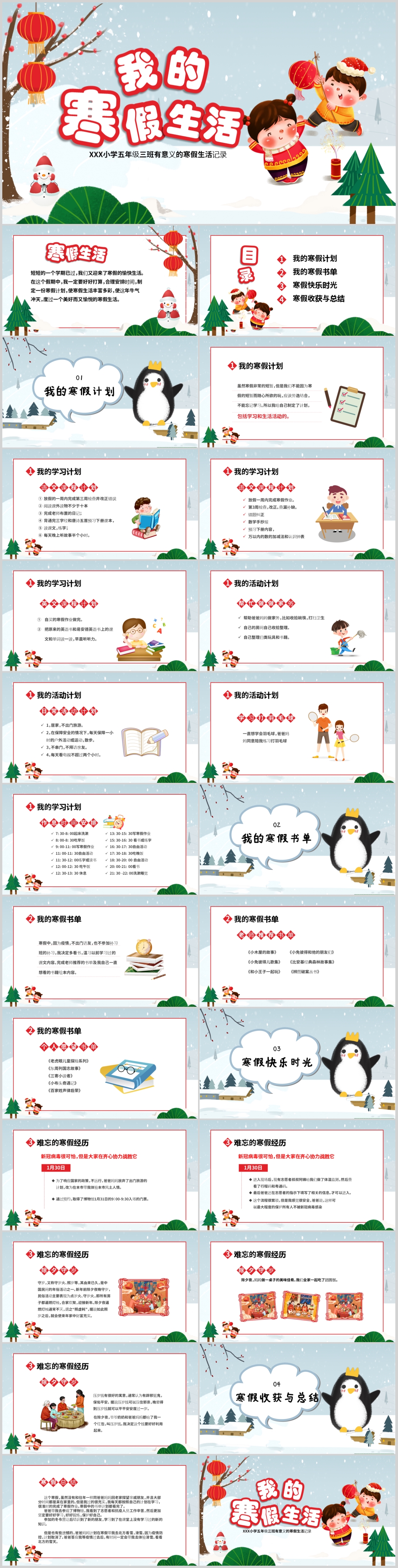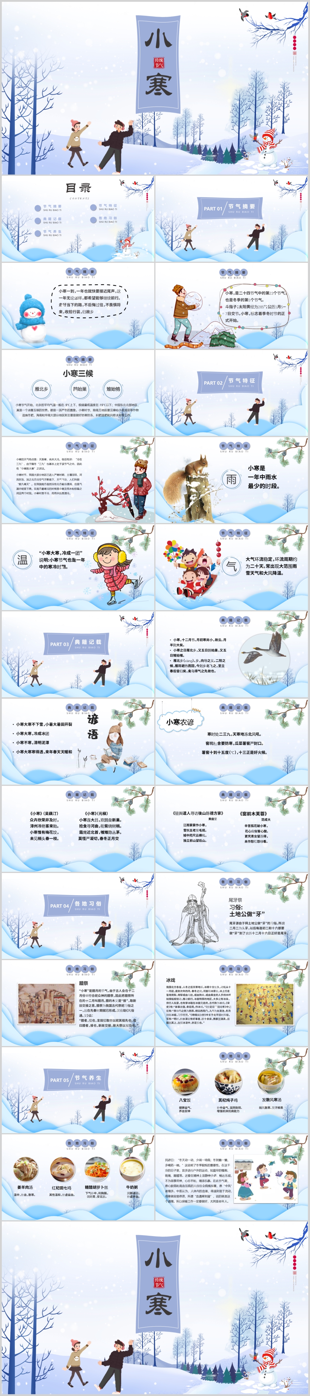 简约卡通二十四节气小寒主题班会课件PPT模板