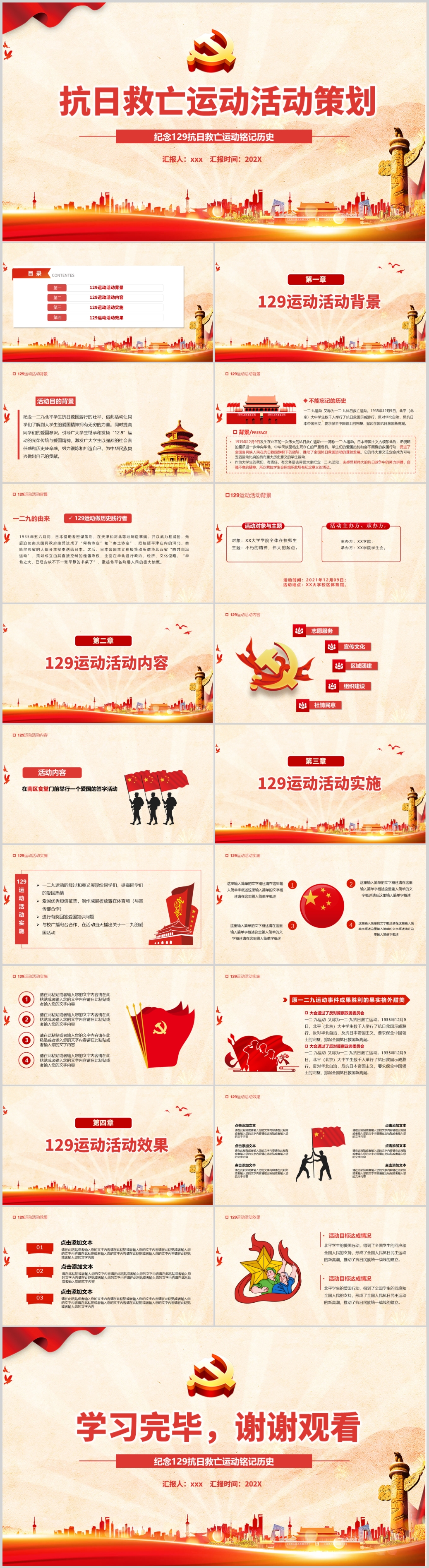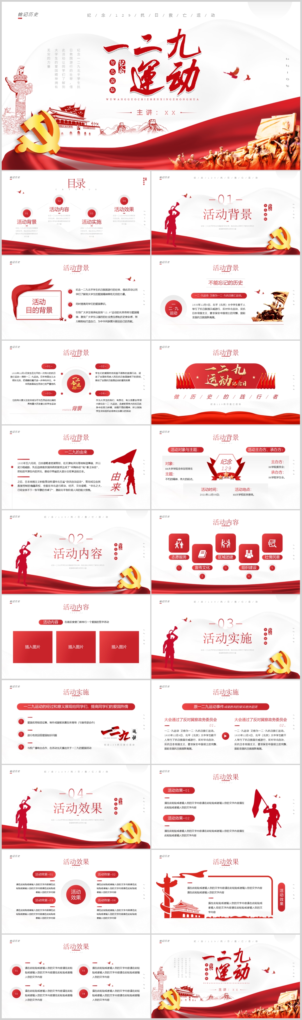 纪念一二九抗日救亡爱国运动主题班会课件PPT模板