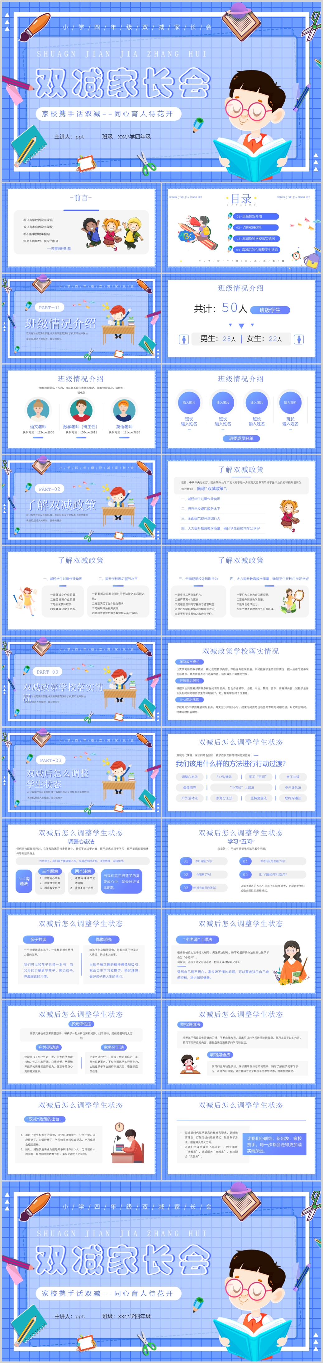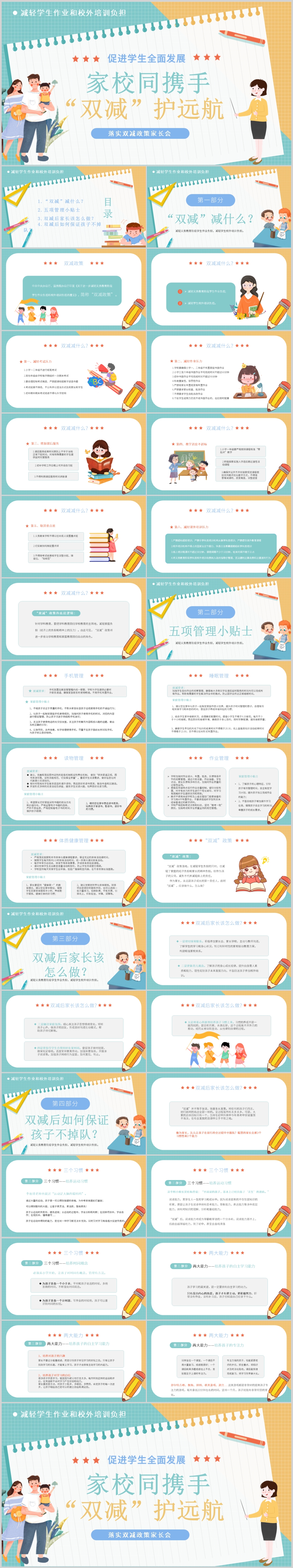 减轻学生作业和校外培训负担落实双减政策家长会主题班会PPT模板