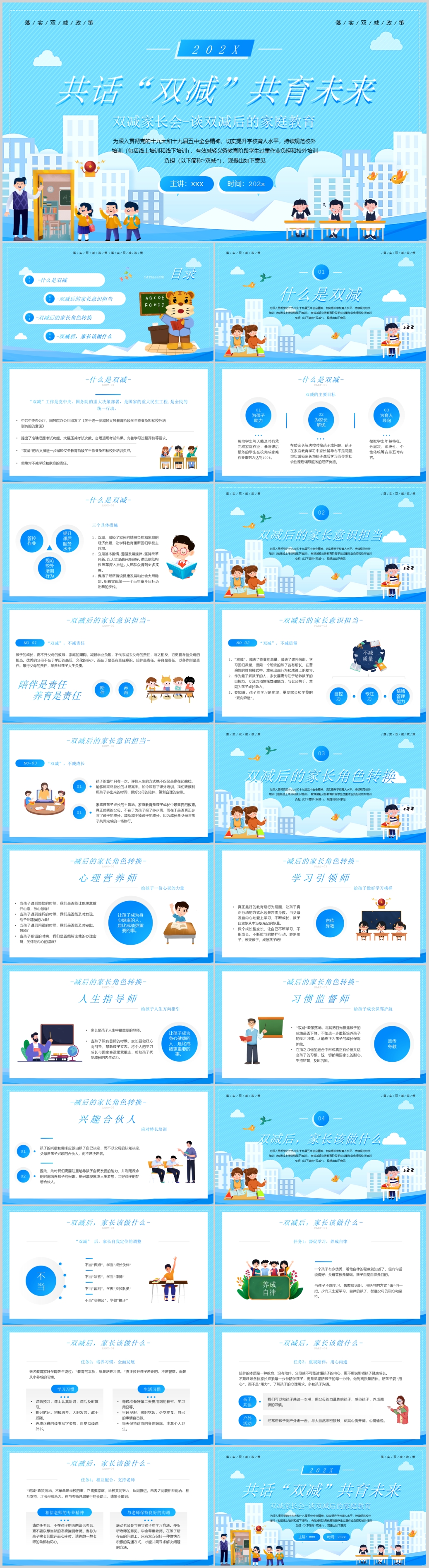 双减家长会-谈双减后的家庭教育主题班会PPT模板