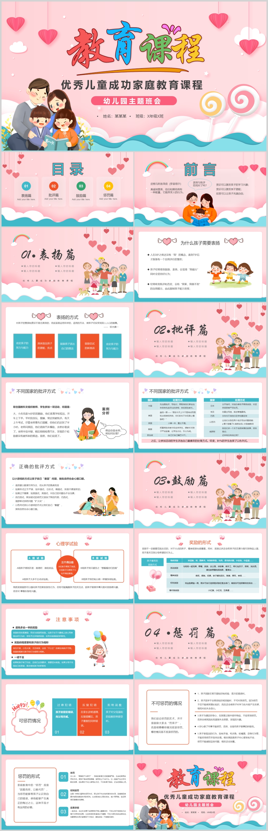 幼儿园中小学生优秀儿童家庭教育主题班会课件PPT模板