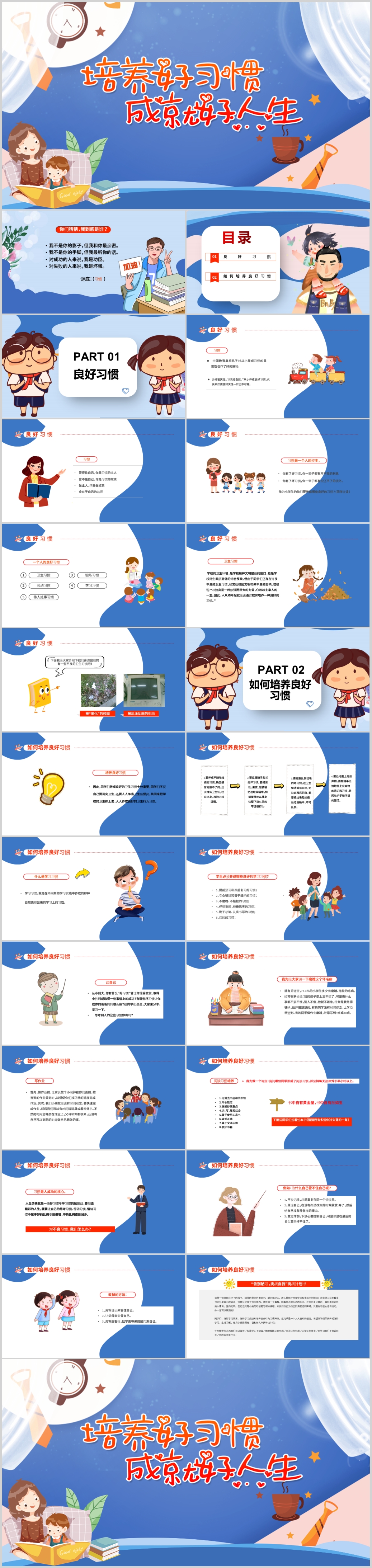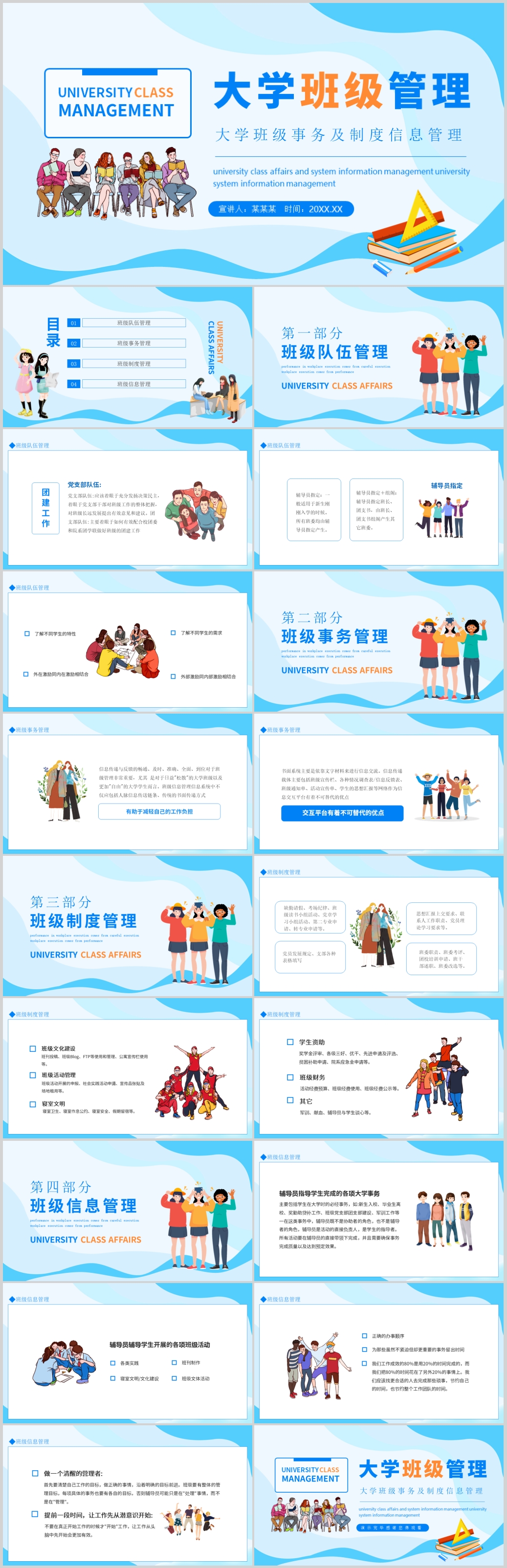 蓝色卡通大学班级事务及制度信息管理培训主题课件PPT模板