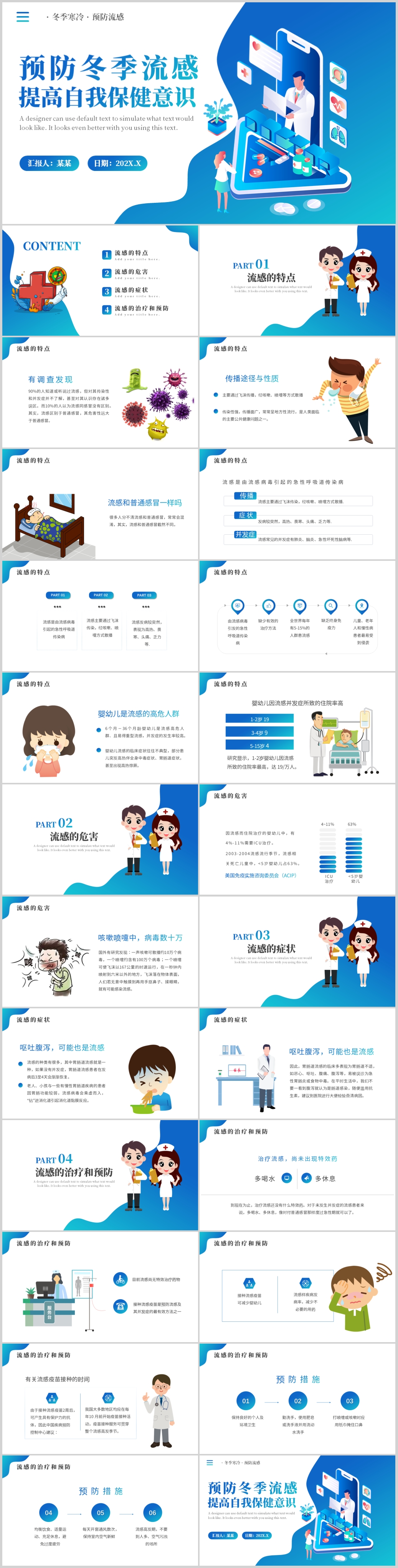 冬季寒冷预防流感提高自我保健意识主题班会PPT模板