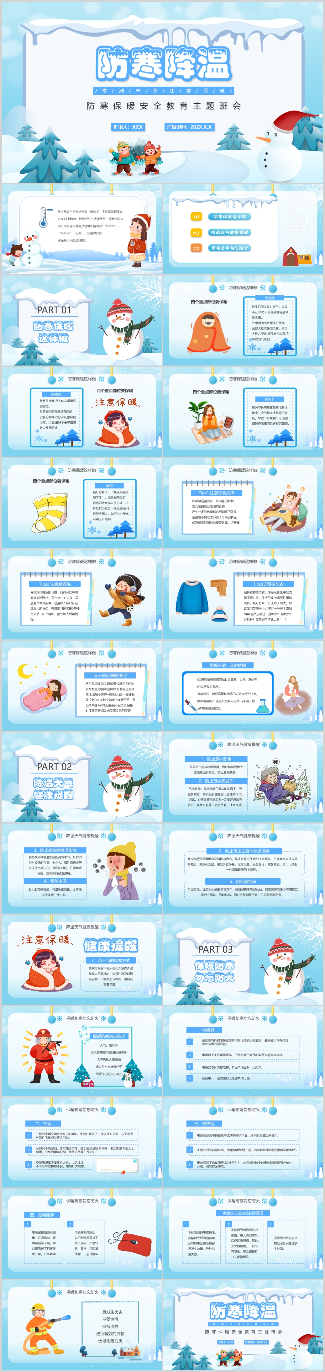 卡通冬季寒潮来袭秋冬防寒保暖安全教育主题班会PPT模板