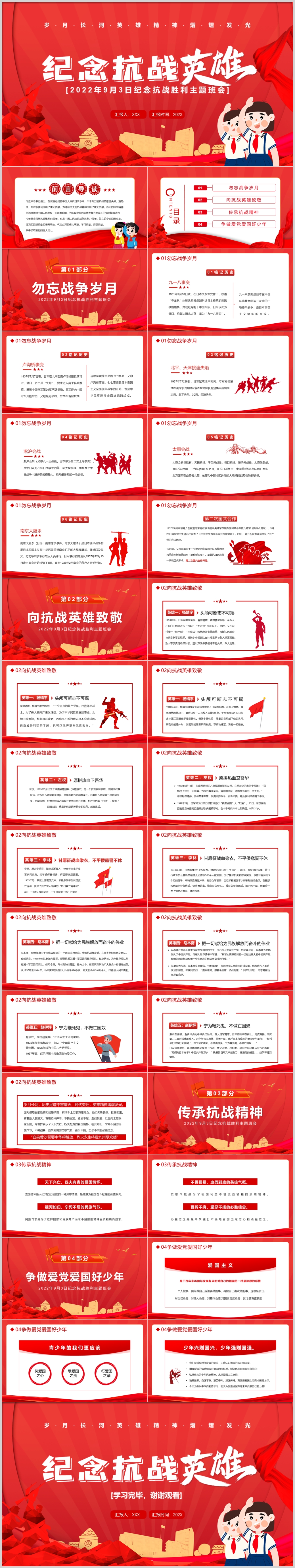 纪念抗战胜利传承抗战精神主题班会课件PPT模板
