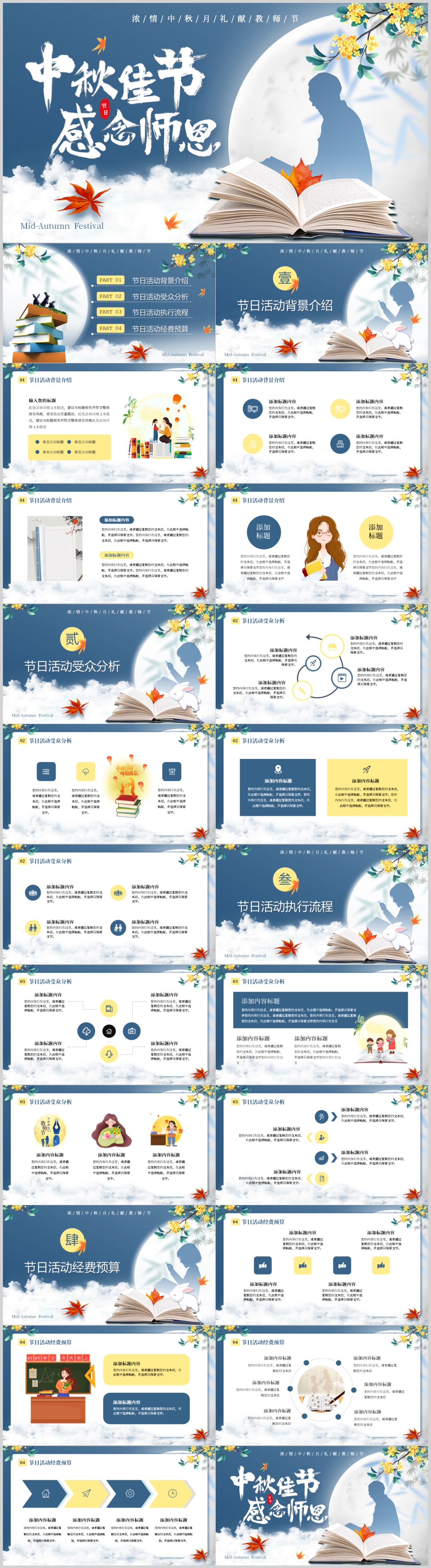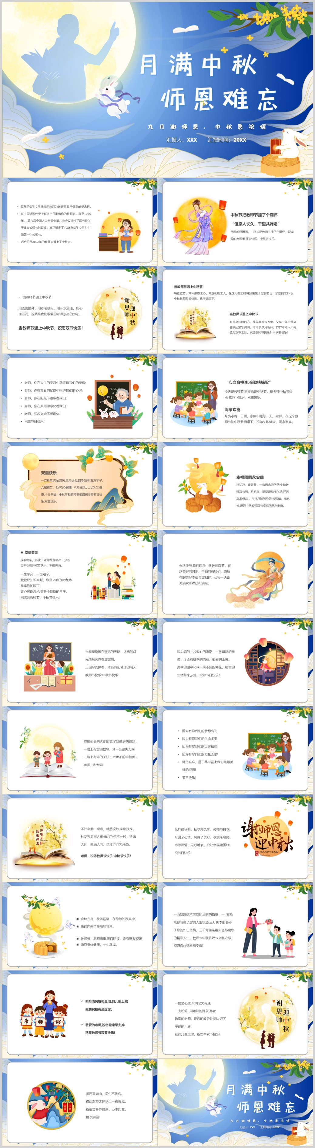 2022教师节中秋节月满中秋师恩难忘双节同庆介绍ppt模板