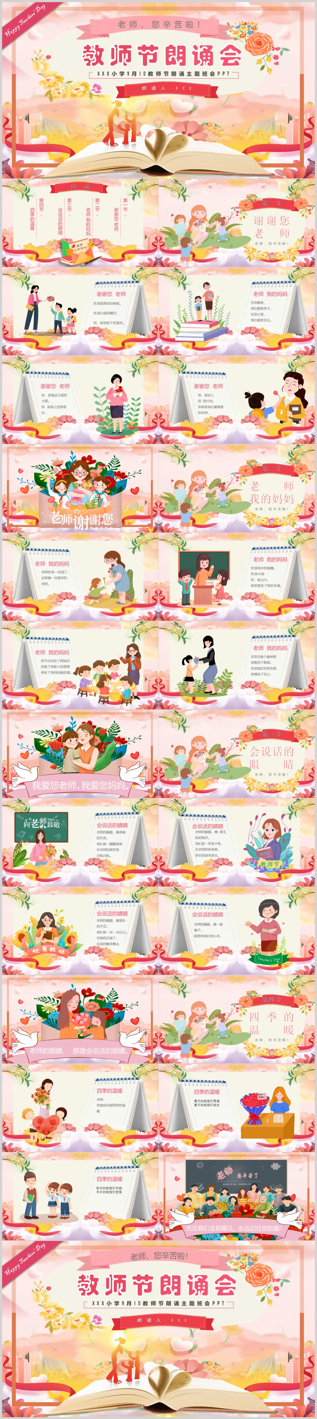 温馨感恩教师节诗词朗诵主题班会动态PPT模板
