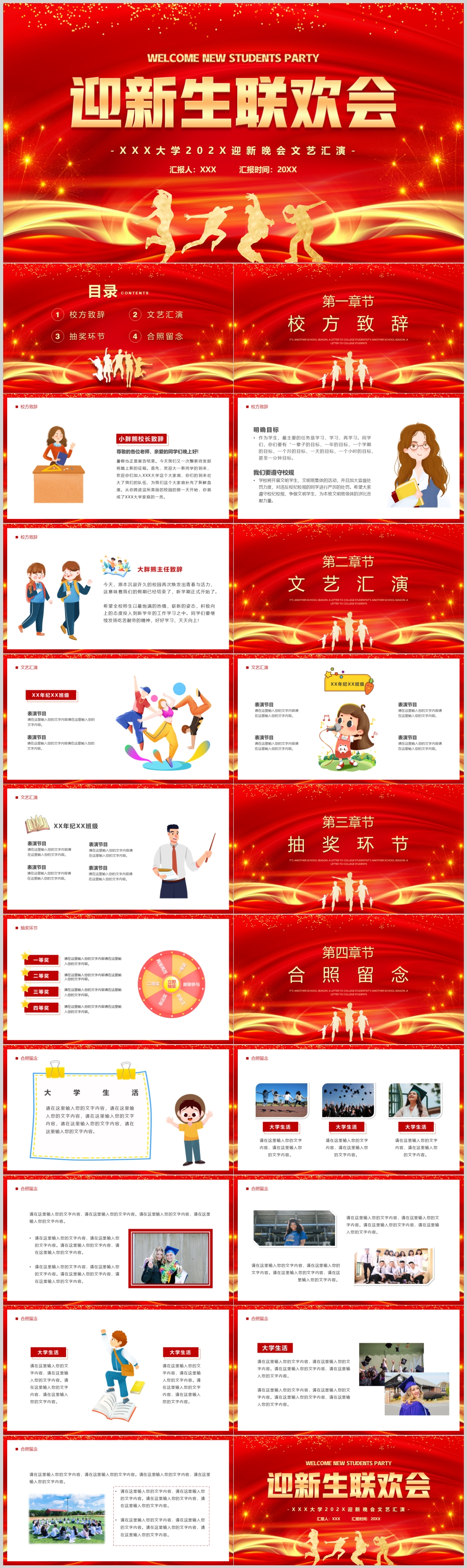 红色校园开学毕业迎新生联欢会文艺汇演通用PPT模板