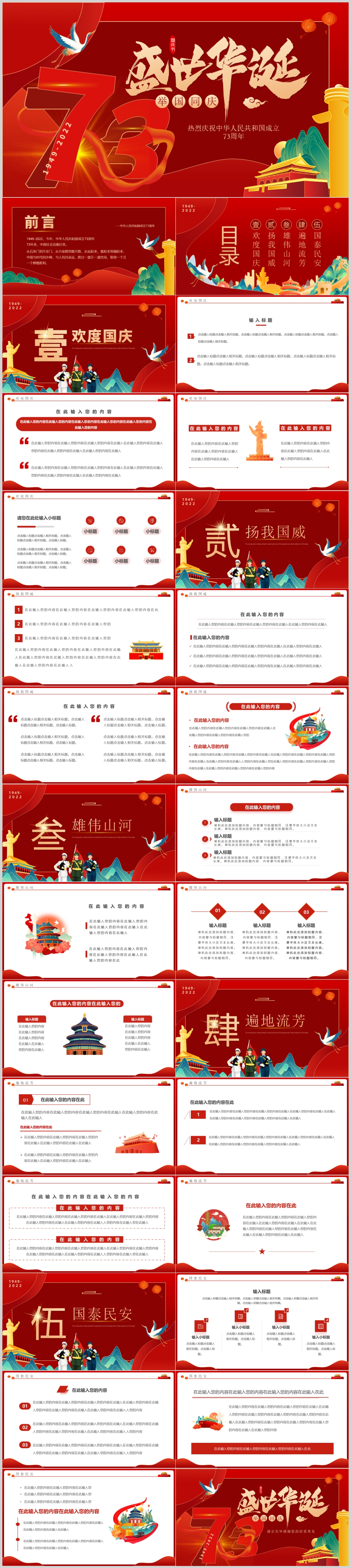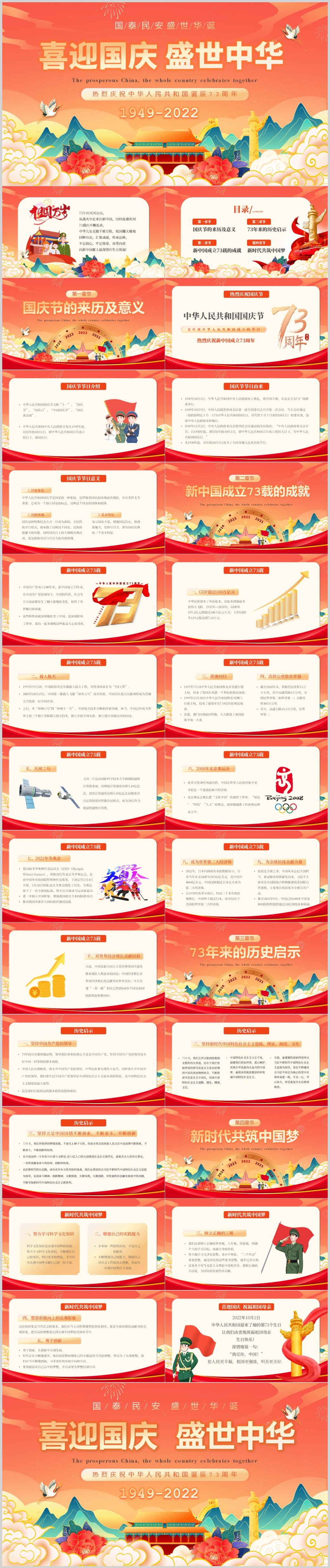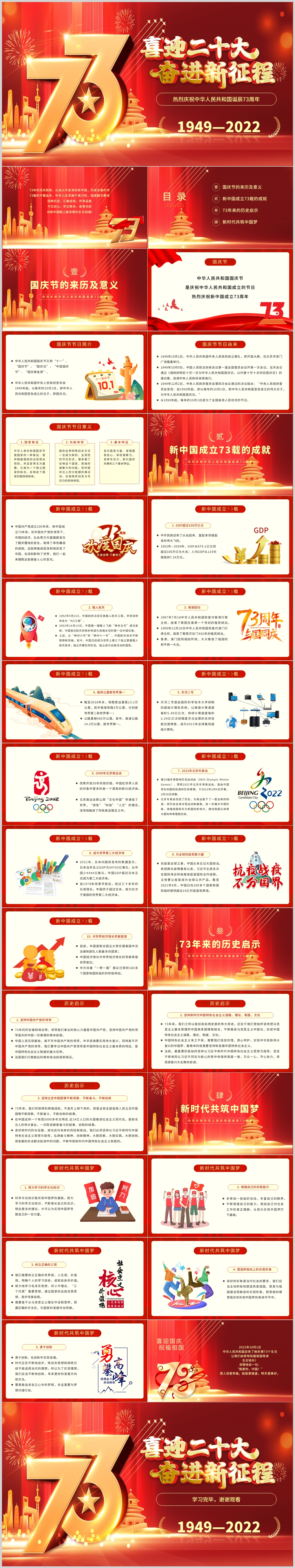 2022喜迎二十大十一国庆节73周年举国同庆十一国庆节ppt模板