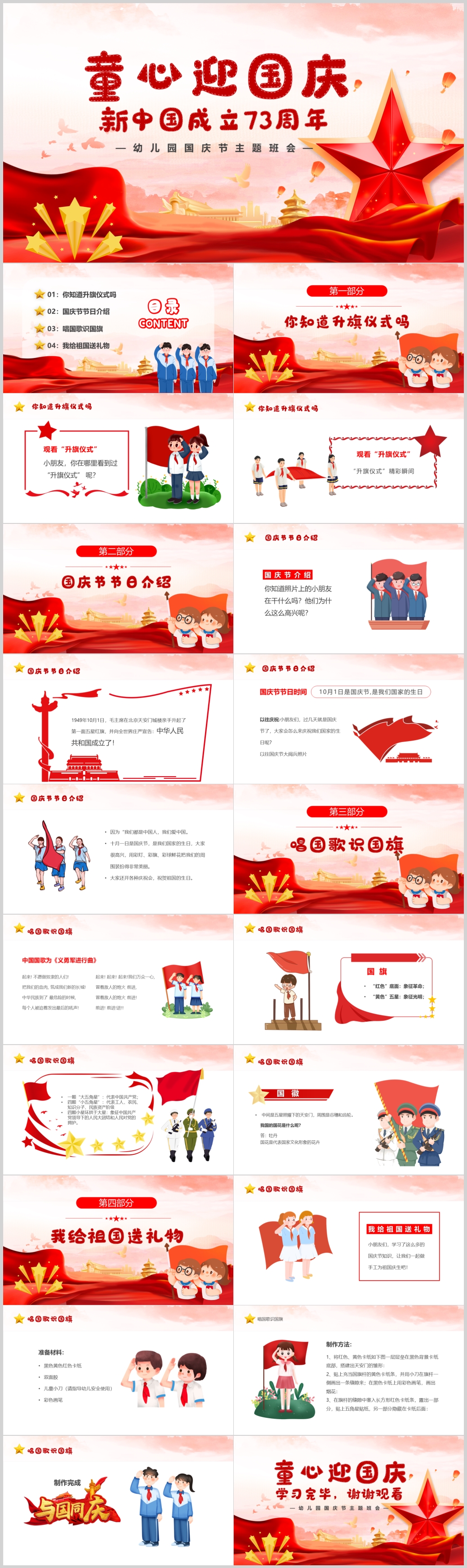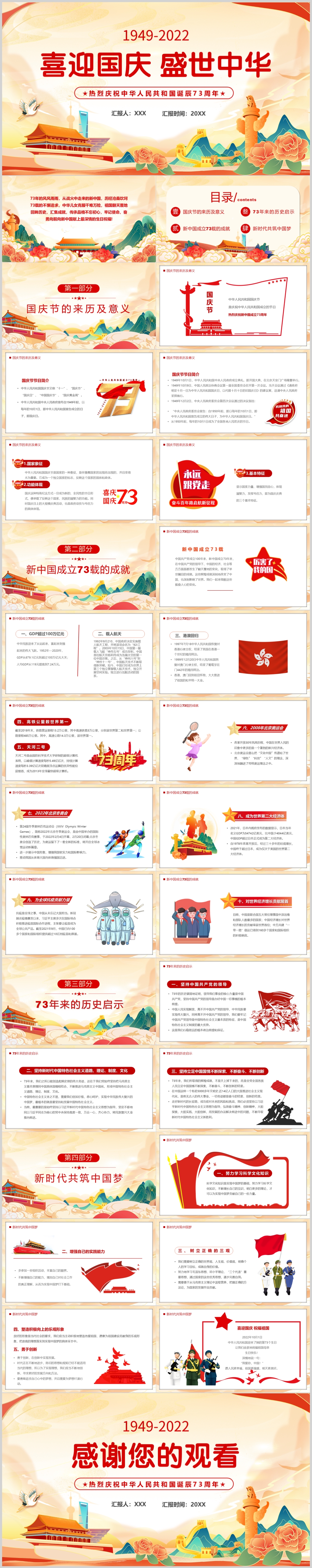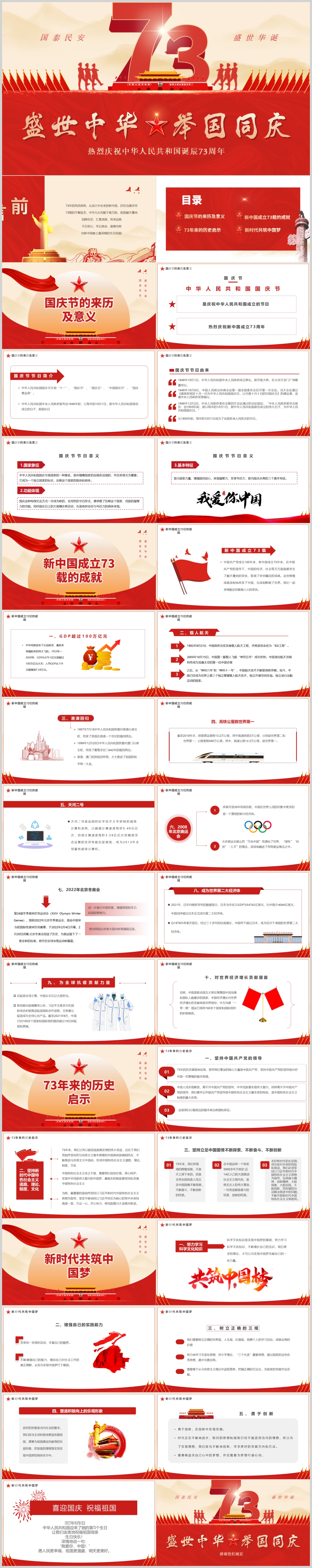 红色欢度国庆节新中国成立73周年主题活动PPT模板
