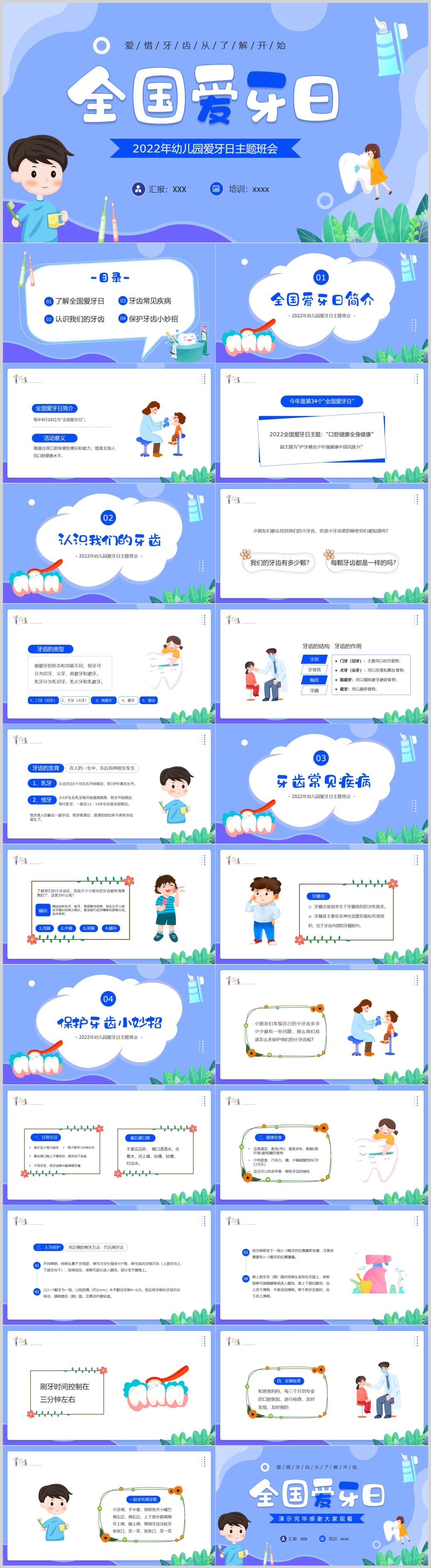 2022年蓝色爱牙日牙齿保健口腔护理主题班会ppt模板