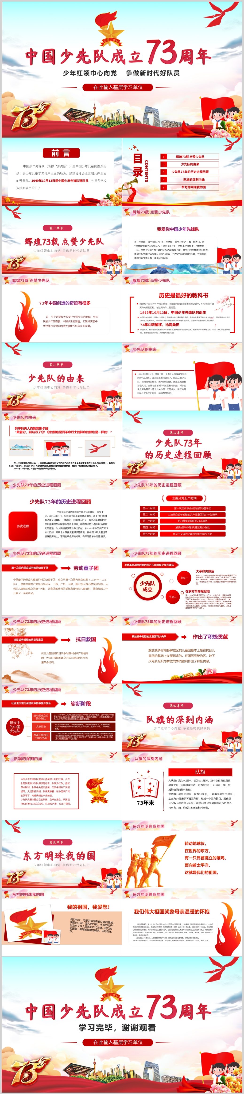 庆祝中国少先队成立73周年少先队主题课件PPT模板(内含WORD演讲稿)