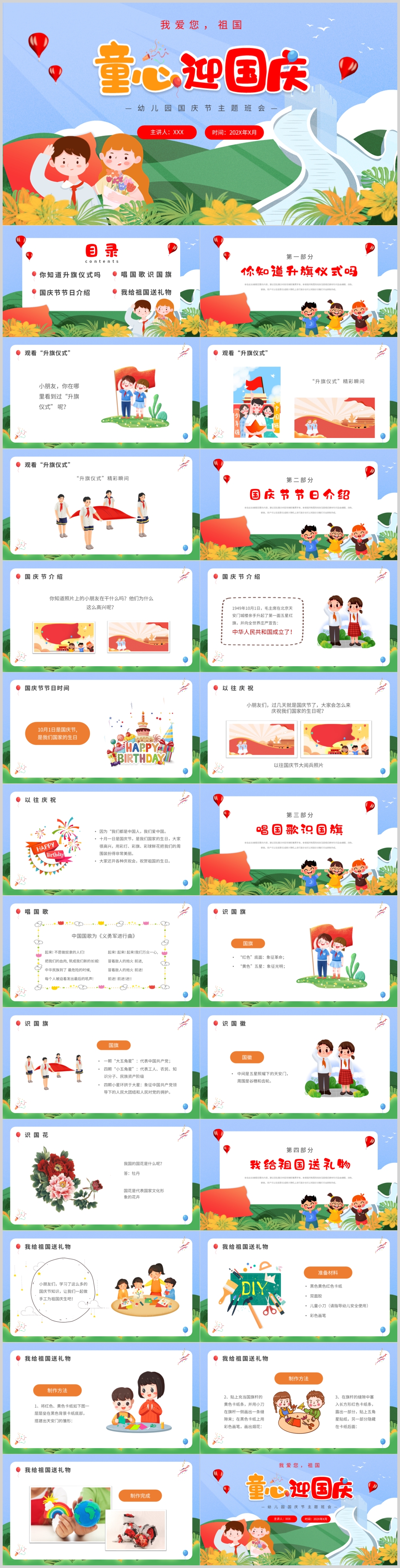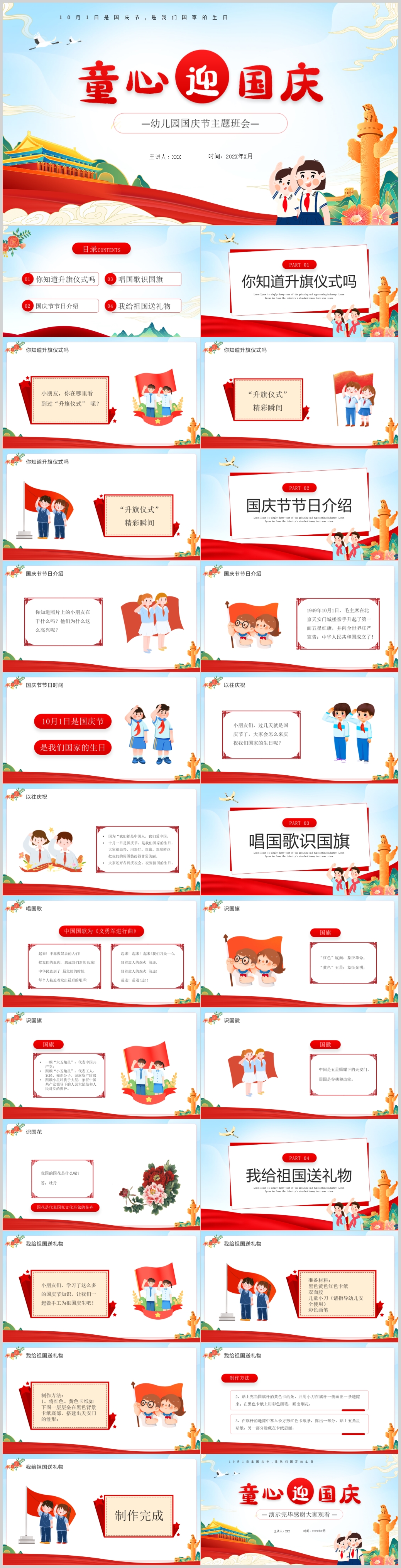卡通中小学生幼儿园十一国庆节节日介绍主题班会课件ppt模板